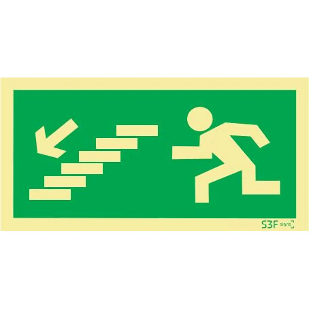 Placa de sinalização fotoluminescente p/ saída de emergência ''Descer ESQ.'' - 200x100mm