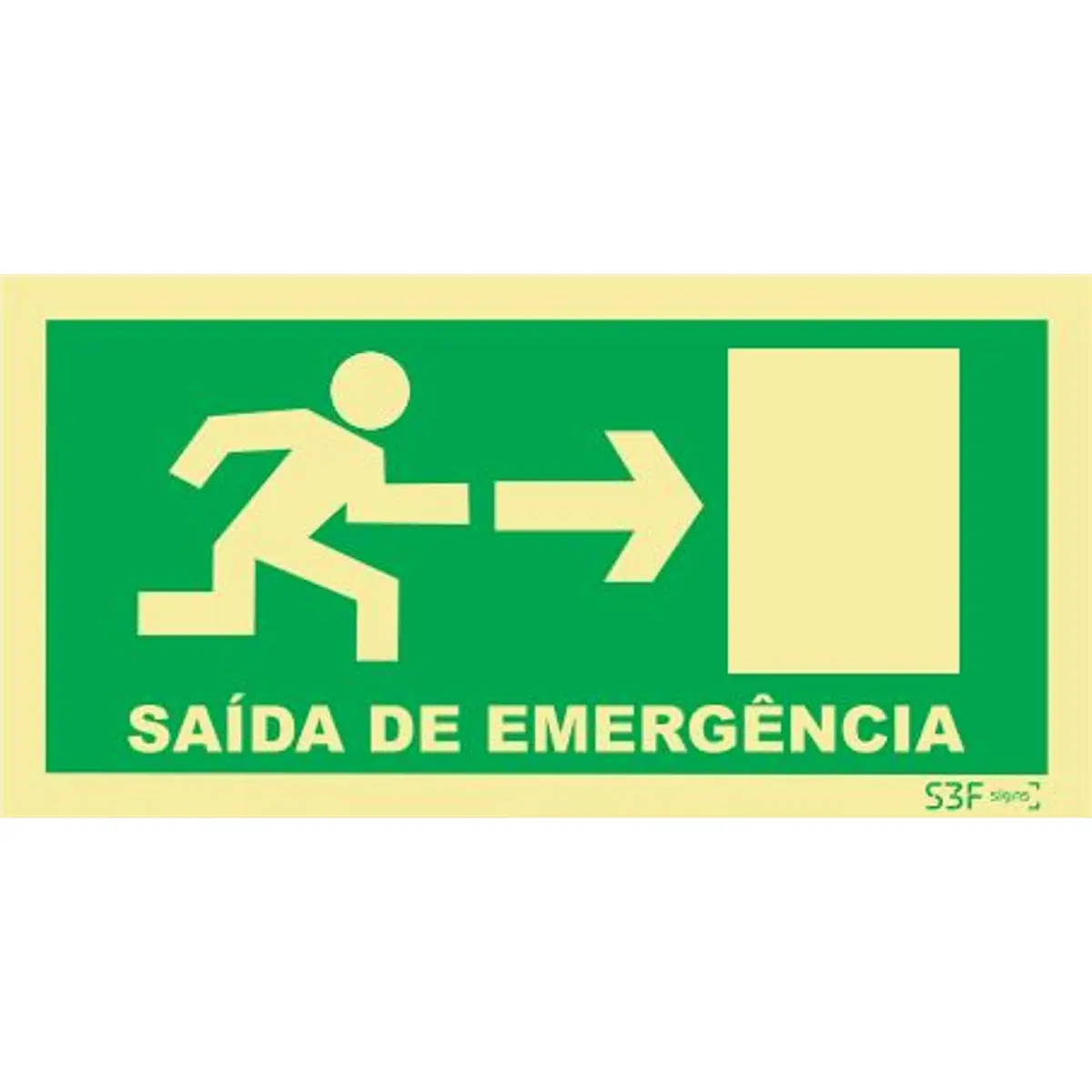 Placa de sinalização fotoluminescente para saída de emergência, fabricada em PVC rígido de 2 mm, auto-extinguível e de elevada durabilidade. Não tóxica e sem fósforo, chumbo ou aditivos radiativos. Impressão digital de alta qualidade, resistente aos raios UV. Certificada segundo ISO 9001:2008 e ISO 14001:2004, com CERTIF, e em conformidade com as normas UNE 23035/2003. Em condições de estimulação com 1000 lux durante 5 minutos, apresenta luminância de 243.9 mcd/m2 aos 10 minutos, 35 mcd/m2 aos 60 minutos e 0.5 mcd/m2 aos 3000 minutos, assegurando visibilidade noturna.