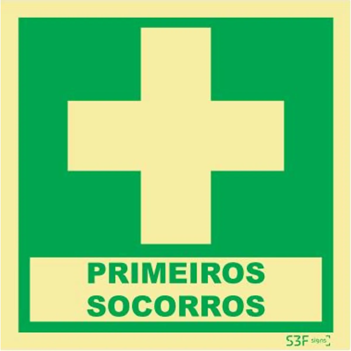 Placa de sinalização fotoluminescente de primeiros socorros - 150x150mm