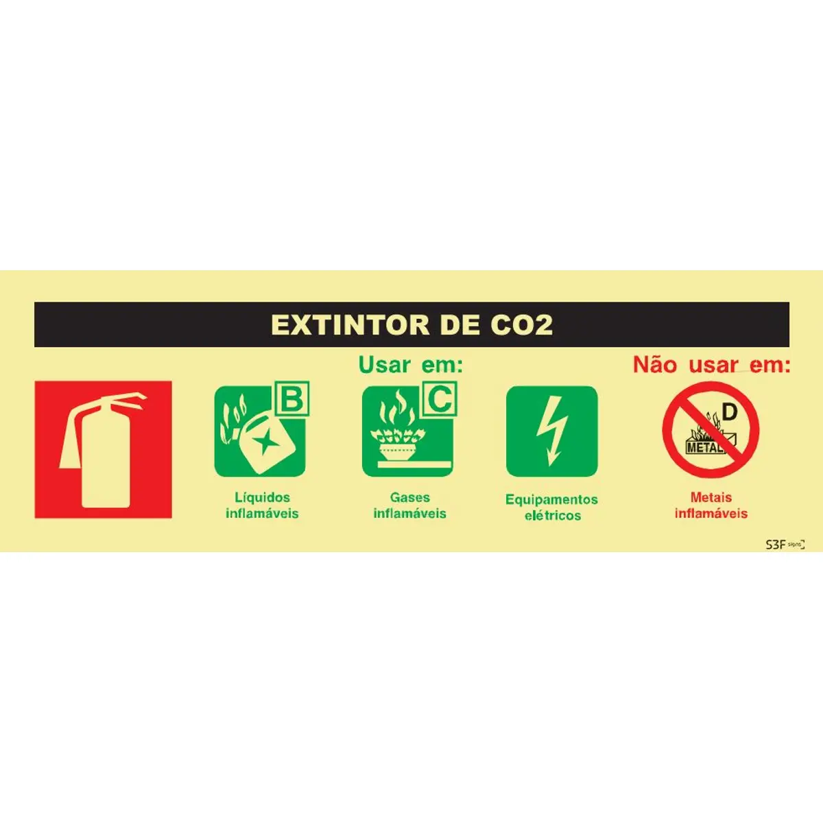Placa de sinalização fotoluminescente ''Extintor de CO2'' - 240x85mm