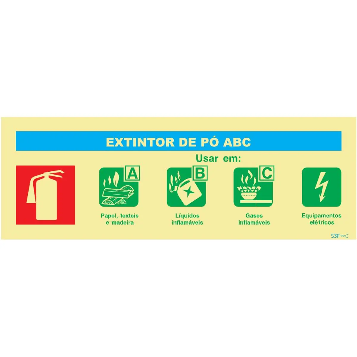 Placa de sinalização fotoluminescente ''Extintor de pó ABC'' - 240x85mm
