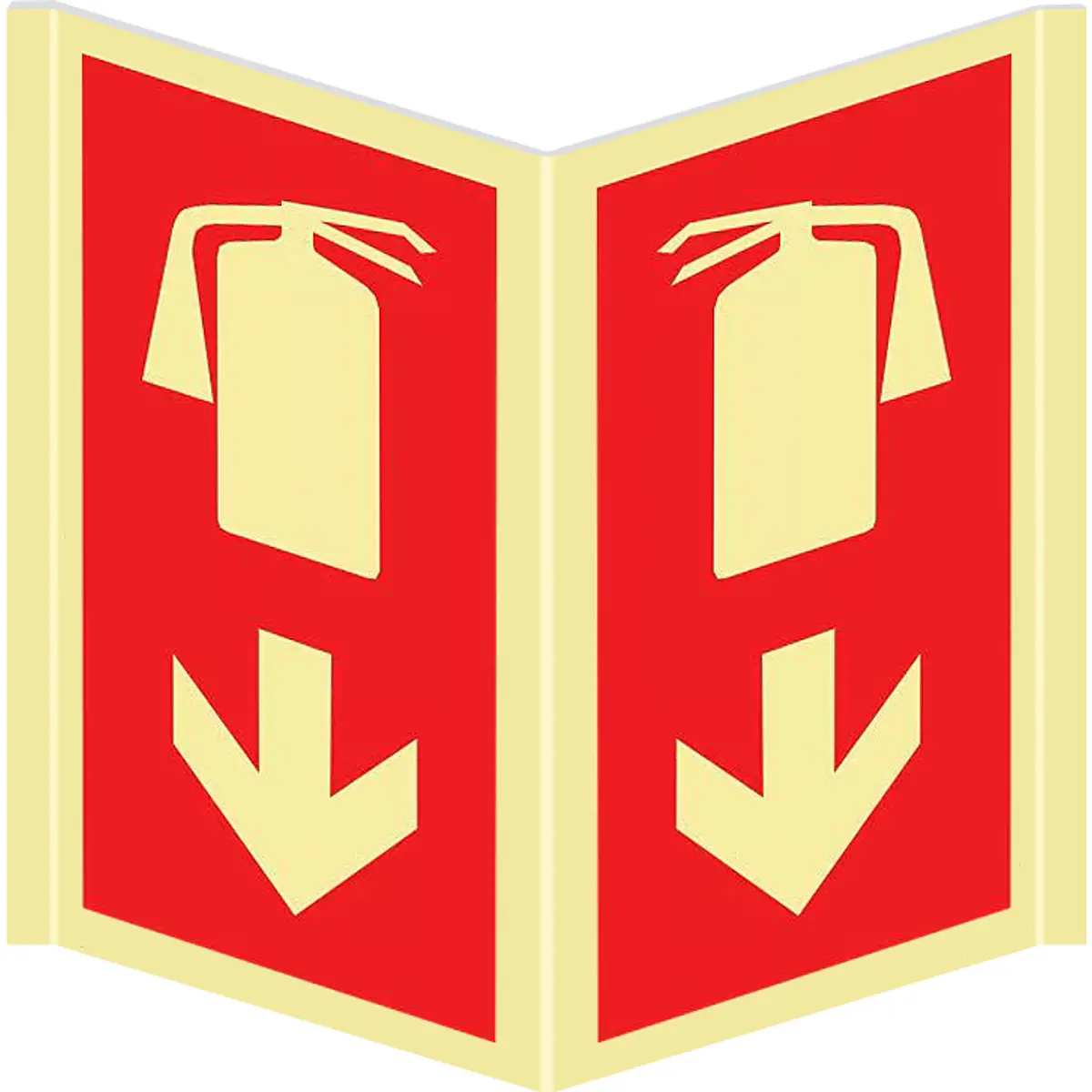 Placa de sinalização fotoluminescente panorâmica 45° ''Extintor em baixo'' - 125x200mm