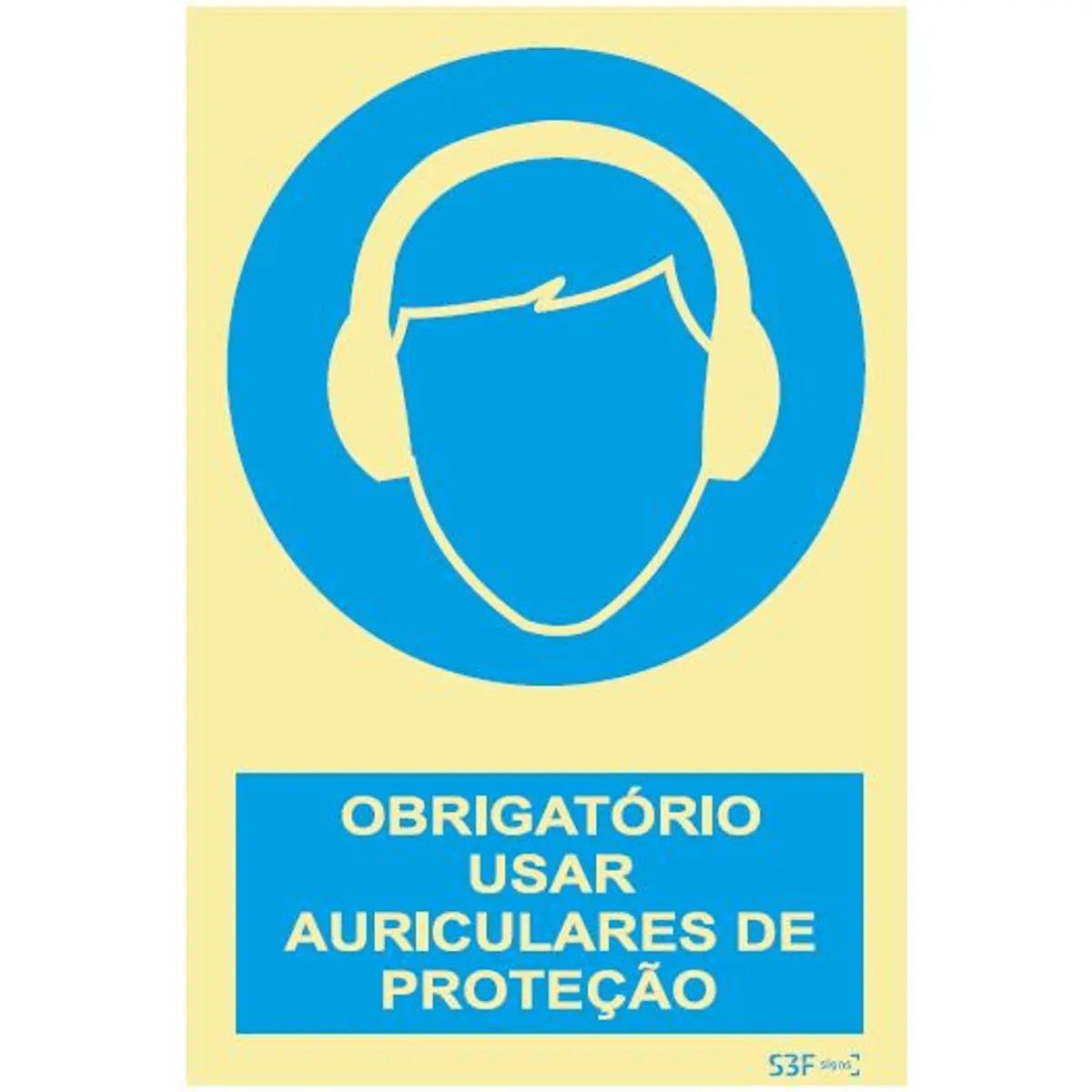 Placa de sinalização fotoluminescente ''Obrigatório usar auriculares de proteção'' - 150x200mm