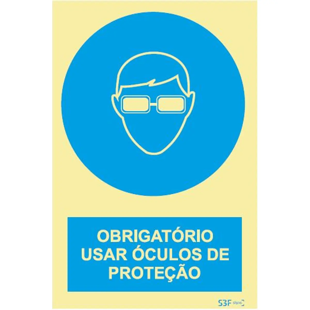 Placa de sinalização fotoluminescente ''Obrigatório usar óculos de proteção'' - 150x200mm