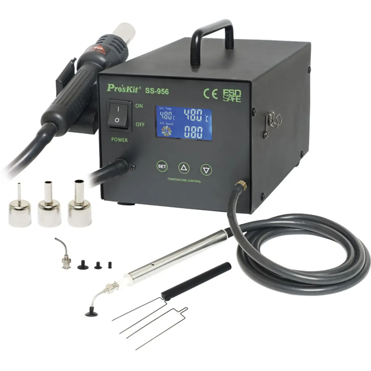 O ar quente e a caneta de sucção podem ser usados individualmente ou ao mesmo tempo.