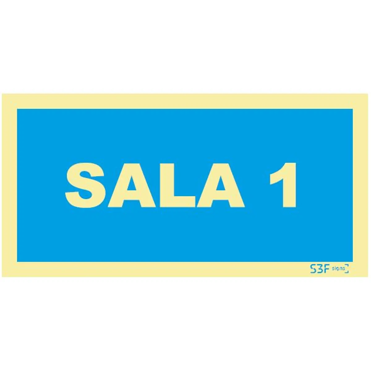 Placa de sinalização fotoluminescente ''Sala 1'' - 200x100mm