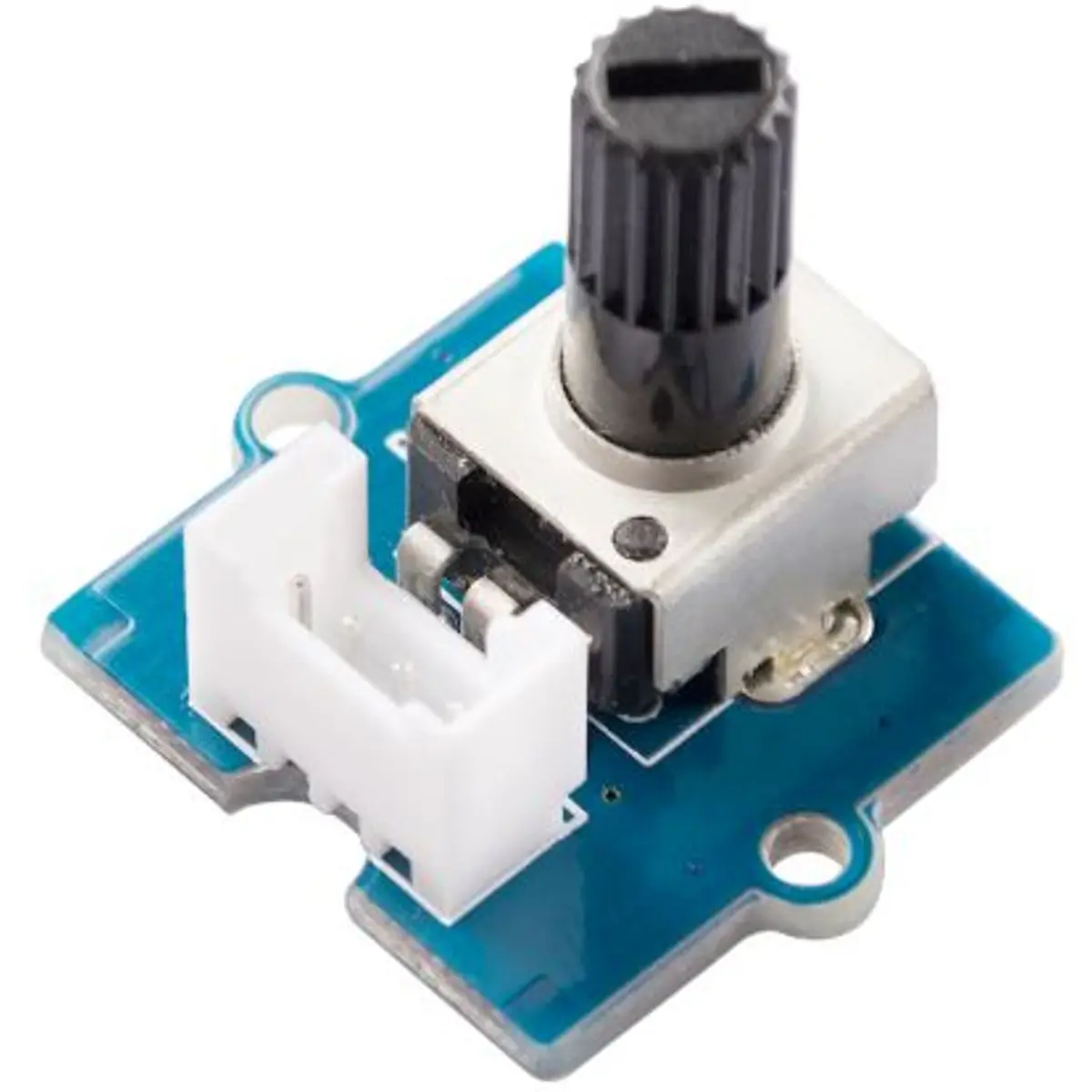 Este módulo potenciômetro de 10K oferece ajuste de resistência com intervalo angular de 300 graus e dimensões de 130 x 90 x 19,5 mm, ideal para prototipagem com Grove e controlo de sinais analógicos em projetos eletrónicos.