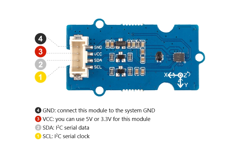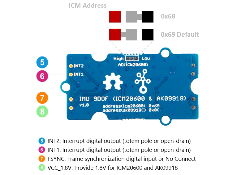 O Grove - IMU 9DOF (lcm20600 + AK09918) combina giroscópio, acelerômetro e bússola electrónica. Foram usados dois chips LCM20600 + AK09918 para implementar essas 3 funções.