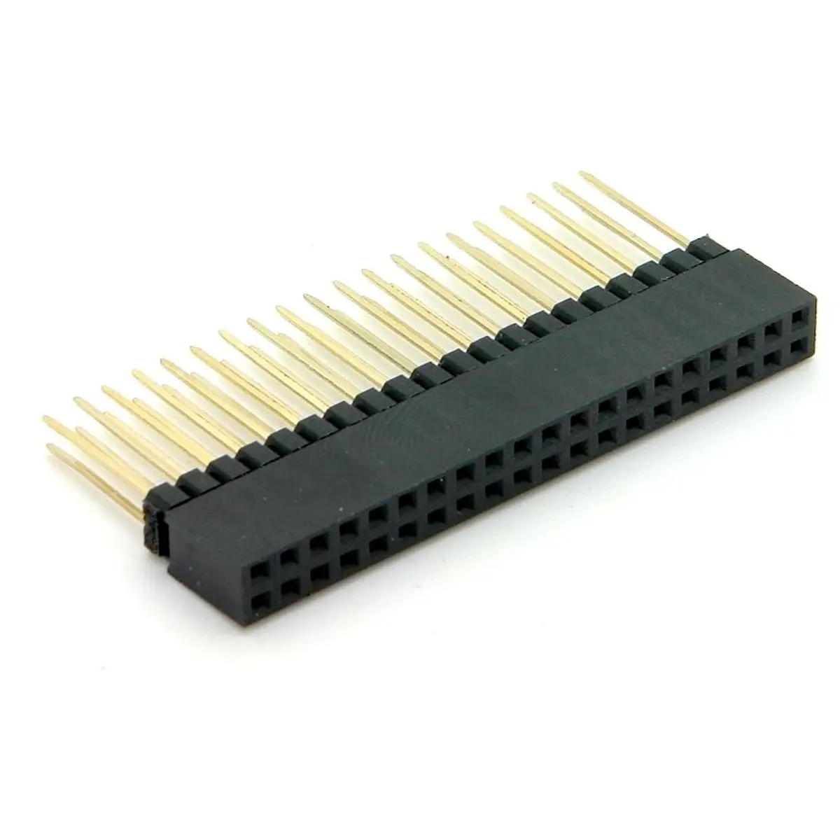 Conector de 40 pinos com espaçador de empilhamento compatível com Raspberry Pi 2 e 3 B/B+. Possui passo de 2,54 mm, altura de pino de 15,5 mm e espessura de 0,65 x 0,35 mm, com contactos banhados a ouro para maior durabilidade e boa condutividade eléctrica. O espaçador removível facilita a montagem em pilha, ideal para prototipagem e projetos de eletrónica que exigem ligações estáveis. As ligações em placa de circuito impresso beneficiam de maior fiabilidade.
