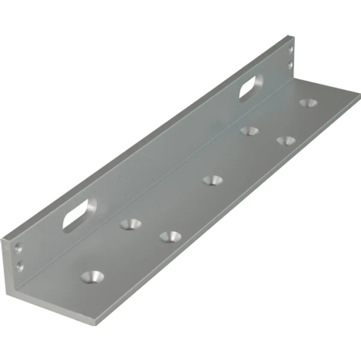 Perfil metálico em L para fixação de fechaduras eletromagnéticas.