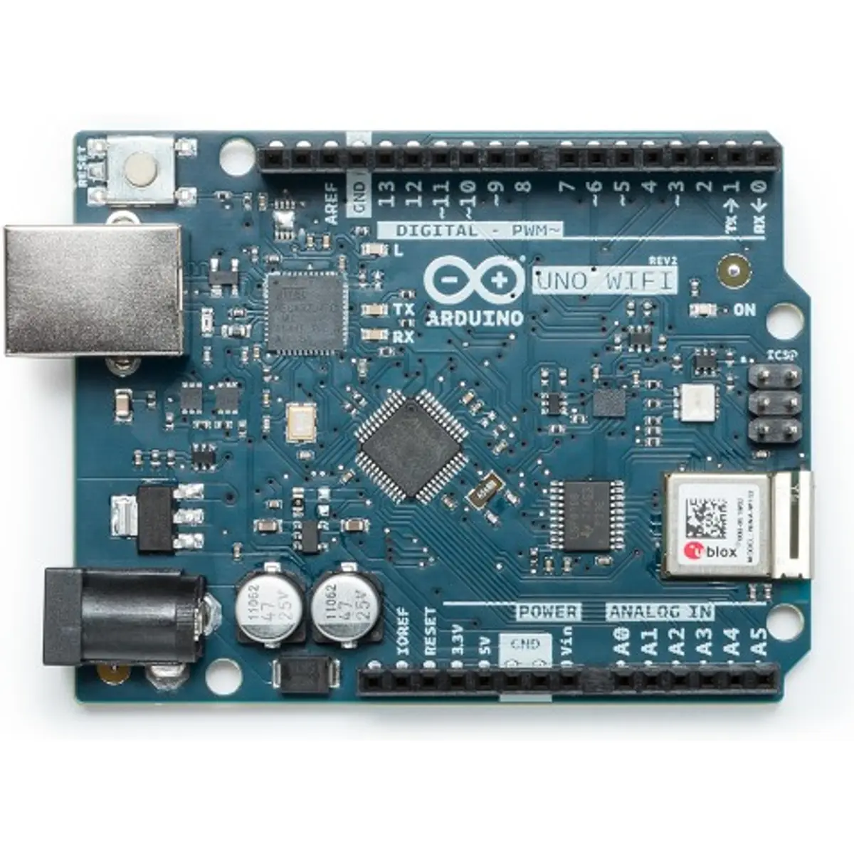 O Arduino UNO WIFI REV2 é basicamente igual ao Arduino Uno Rev3 mas com a adição de WiFi e algumas outras melhorias. Incorpora um novo microprocessador de 8 bits da Microchip e possui uma IMU (Inertial Measurement Unit) integrada.