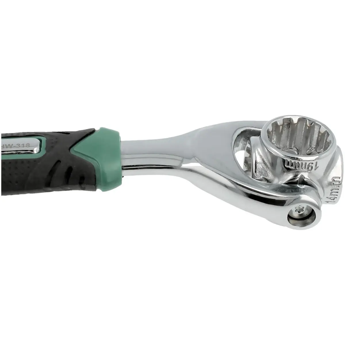 Chave de tubo hexagonal 48 em 1 com cabeças giratórias de 360° para trabalhos de montagem e manutenção. Fabricada em aço S45C com cabeça 40Cr, manga antiderrapante em ABS e TPE, oferece 48 medidas de passo, peso de 570 g e comprimento de 255 mm, proporcionando fiabilidade, conforto e versatilidade para várias aplicações.