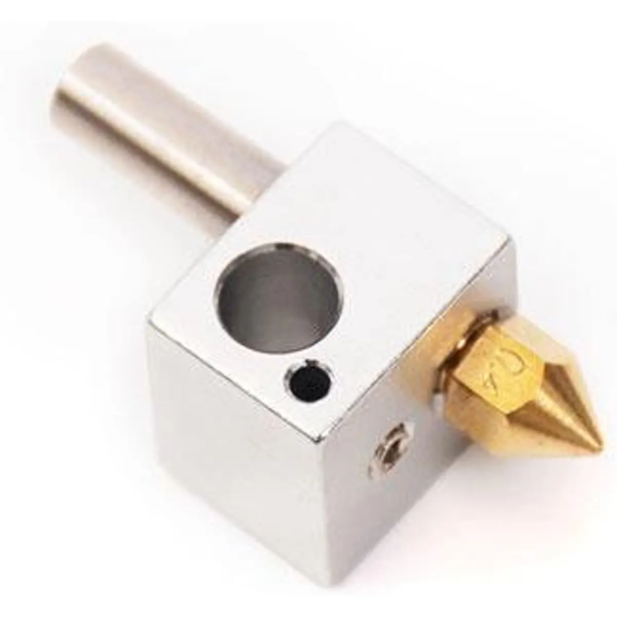 Kit de extrusor para impressoras 3D com bico de extrusão em latão 0,4 mm, bloco de aquecimento em liga de alumínio e parafuso de fixação em inox.