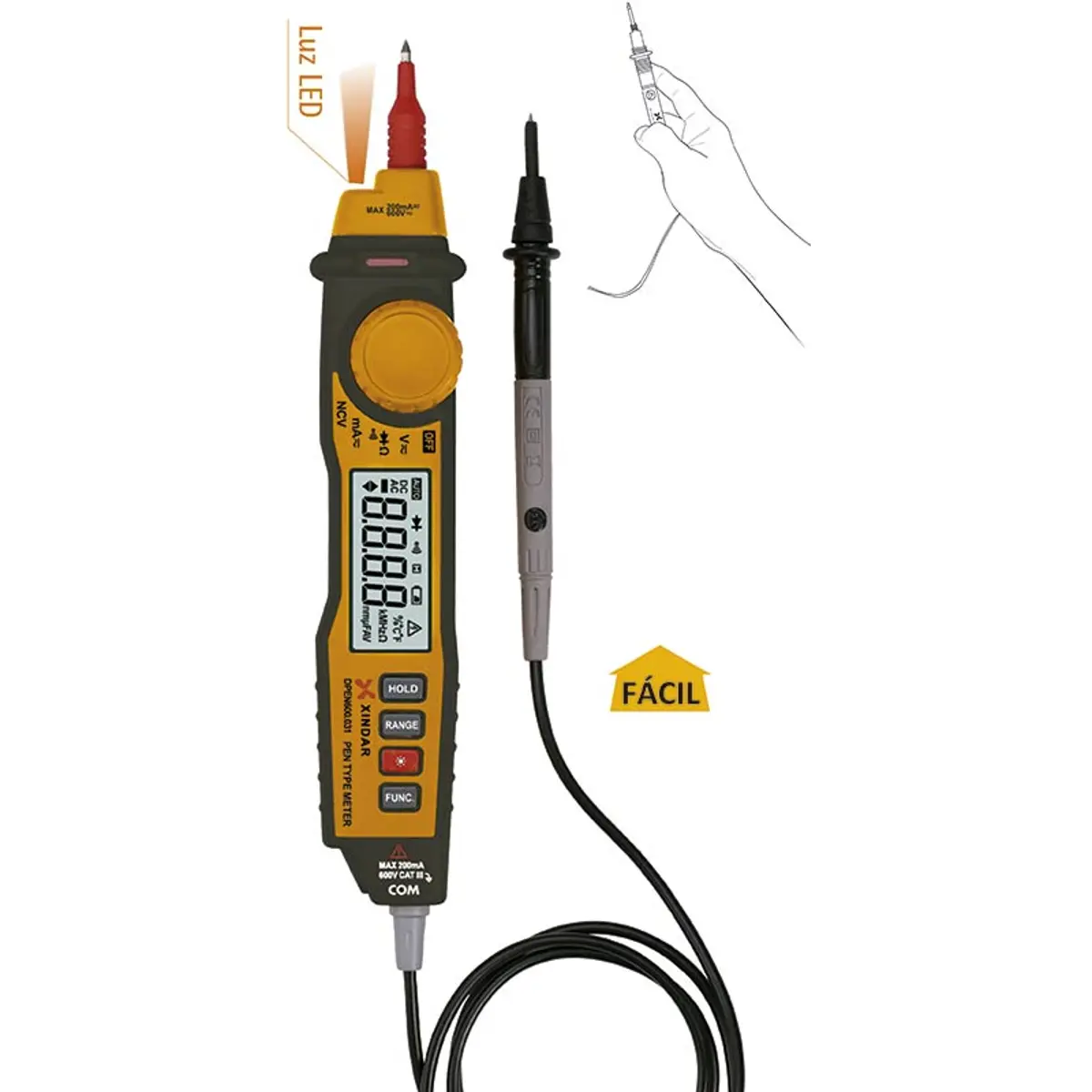 Xindar DPEN600.31 - Multímetro digital tipo caneta (600Vac/dc 200mAac/dc 20MΩ NCV)