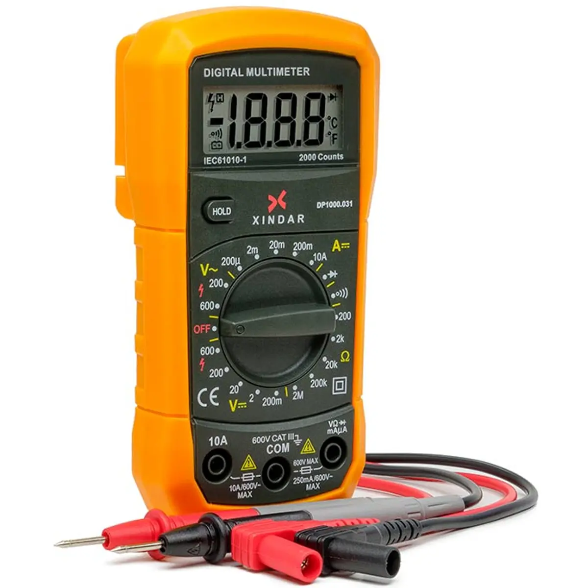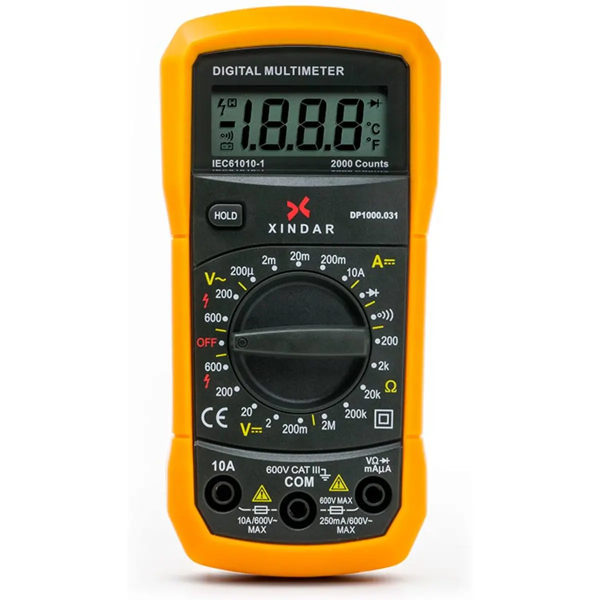 - Medição tensão AC: 200V / 600V
