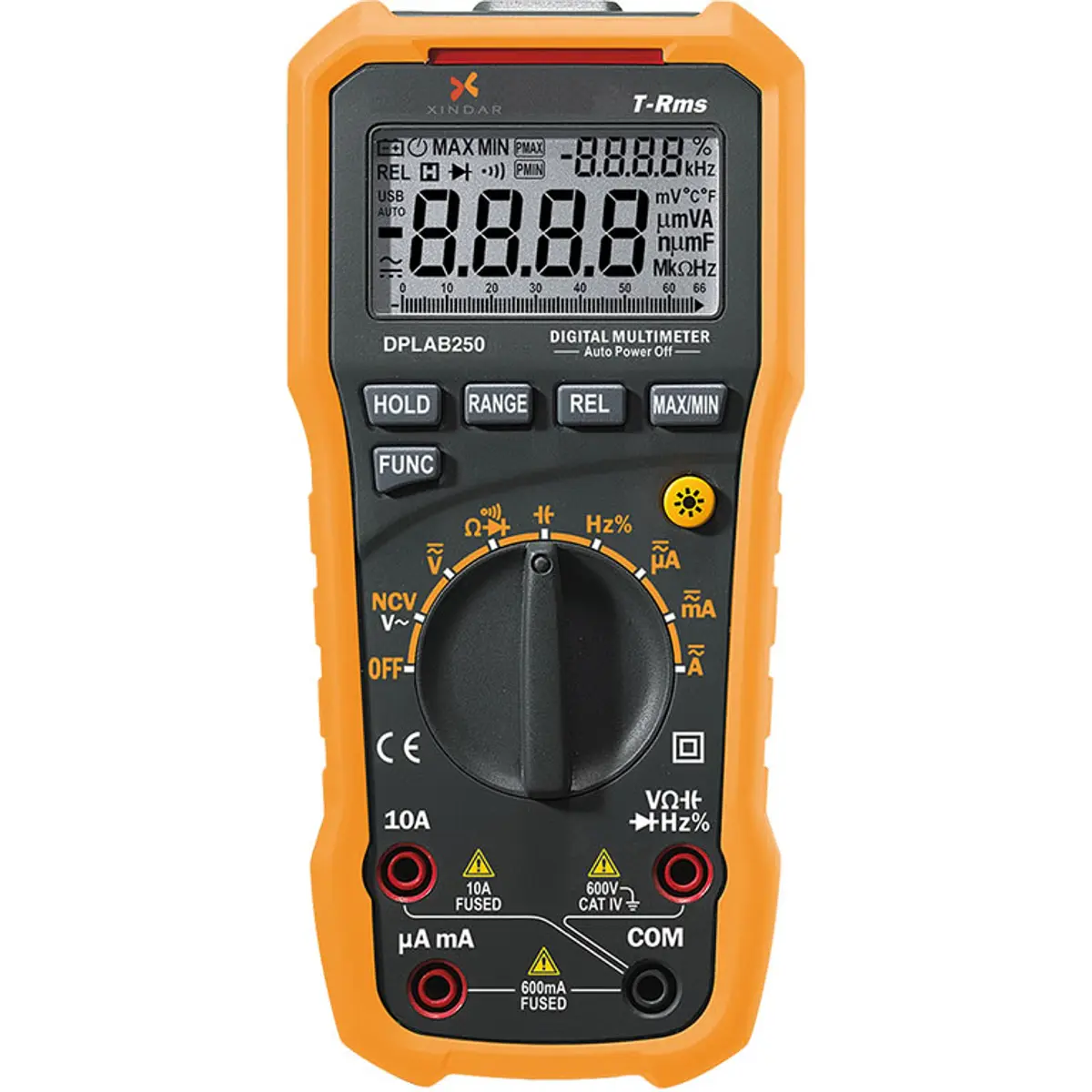 - Corrente contínua DC: 660μA / 6600μA / 66mA / 660mA / 10A