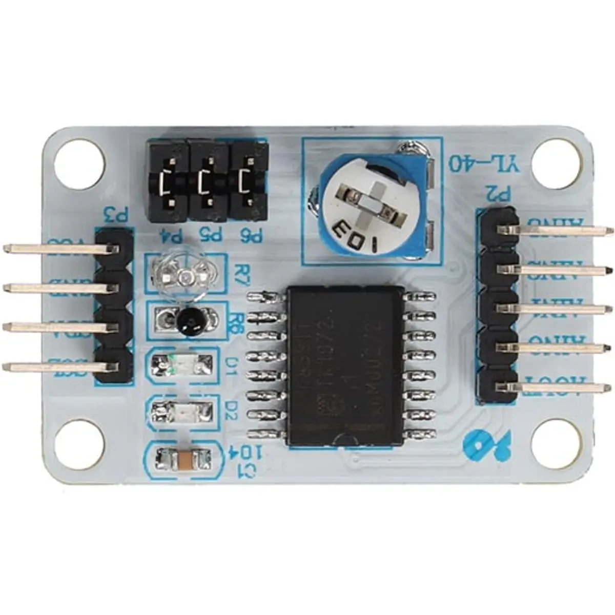 Para fins de teste, o VMA344 contém um fototransistor, NTC e um trimmer que são conectados ao PCF8591 por 3 jumpers.
