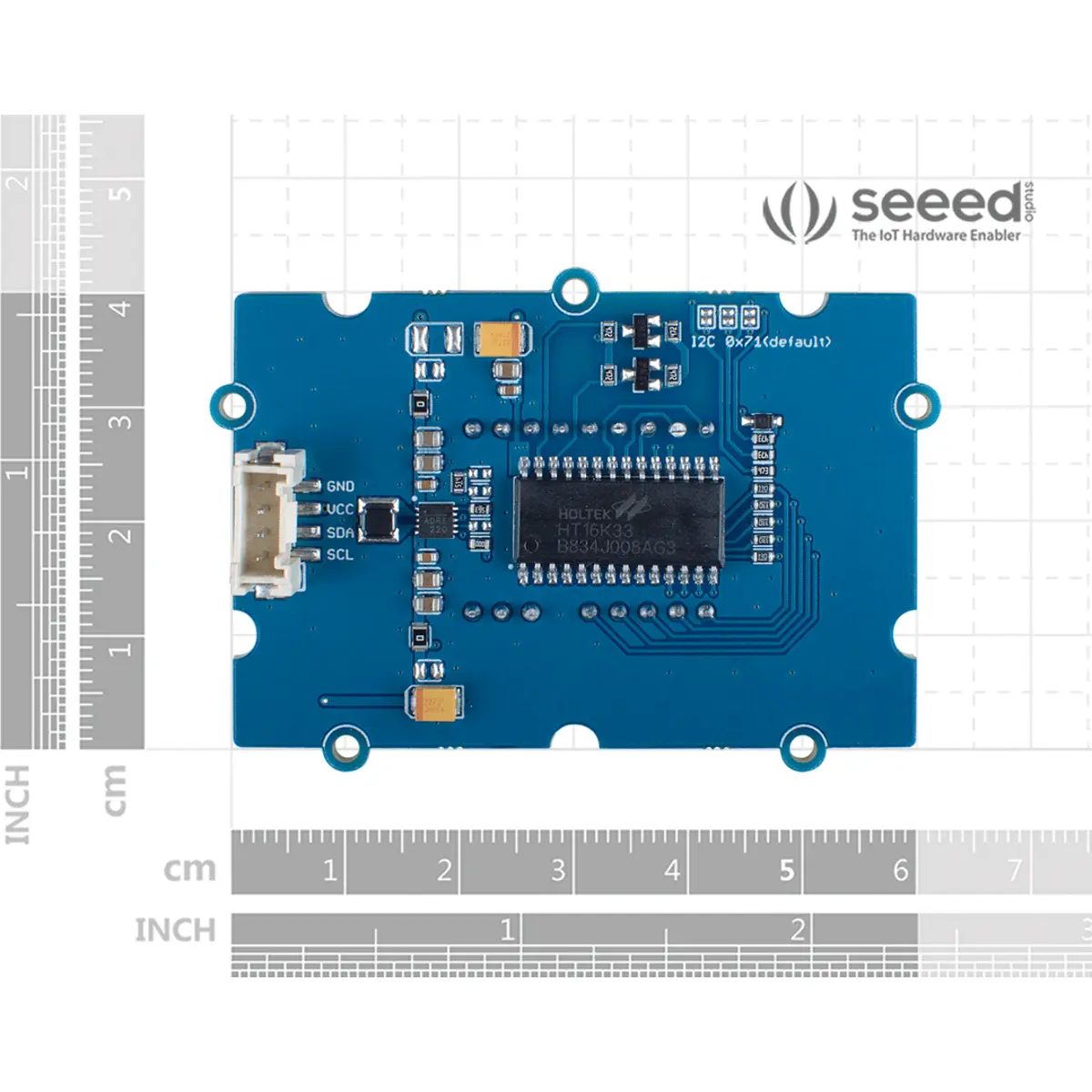 - Endereço de I2C: selecionável (predefinido para 0x71)