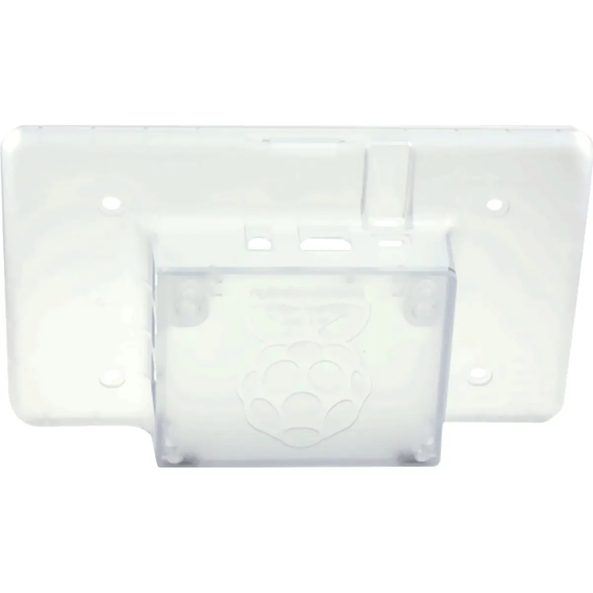 Se for necessário montar a caixa Raspberry Pi na parede, é possível remover a tampa traseira para ter acesso aos dois furos integrados para montagem na parede