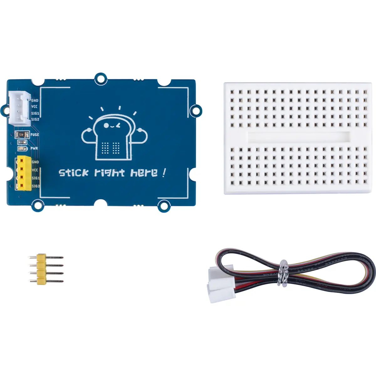 Este módulo breadboard integra uma porta para conectividade plug-and-play, compatível com controladores como Arduino, BeagleBone Green e LinkIt One, permitindo a construção de módulos Grove criativos. Possui conector para prototipagem, fusível de proteção tipo PTC e LED de alimentação que indica o estado de funcionamento. As dimensões de 40x60mm tornam-no compacto para projetos de bancada e montagens em protótipo; ideal para prototipagem rápida e experimentação educativa.