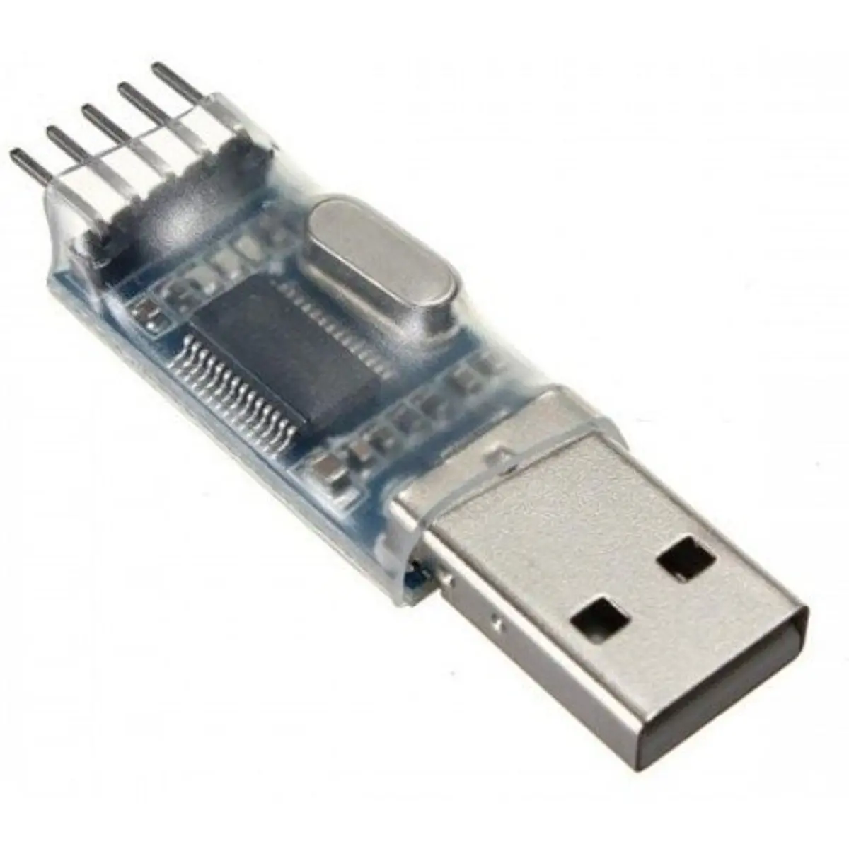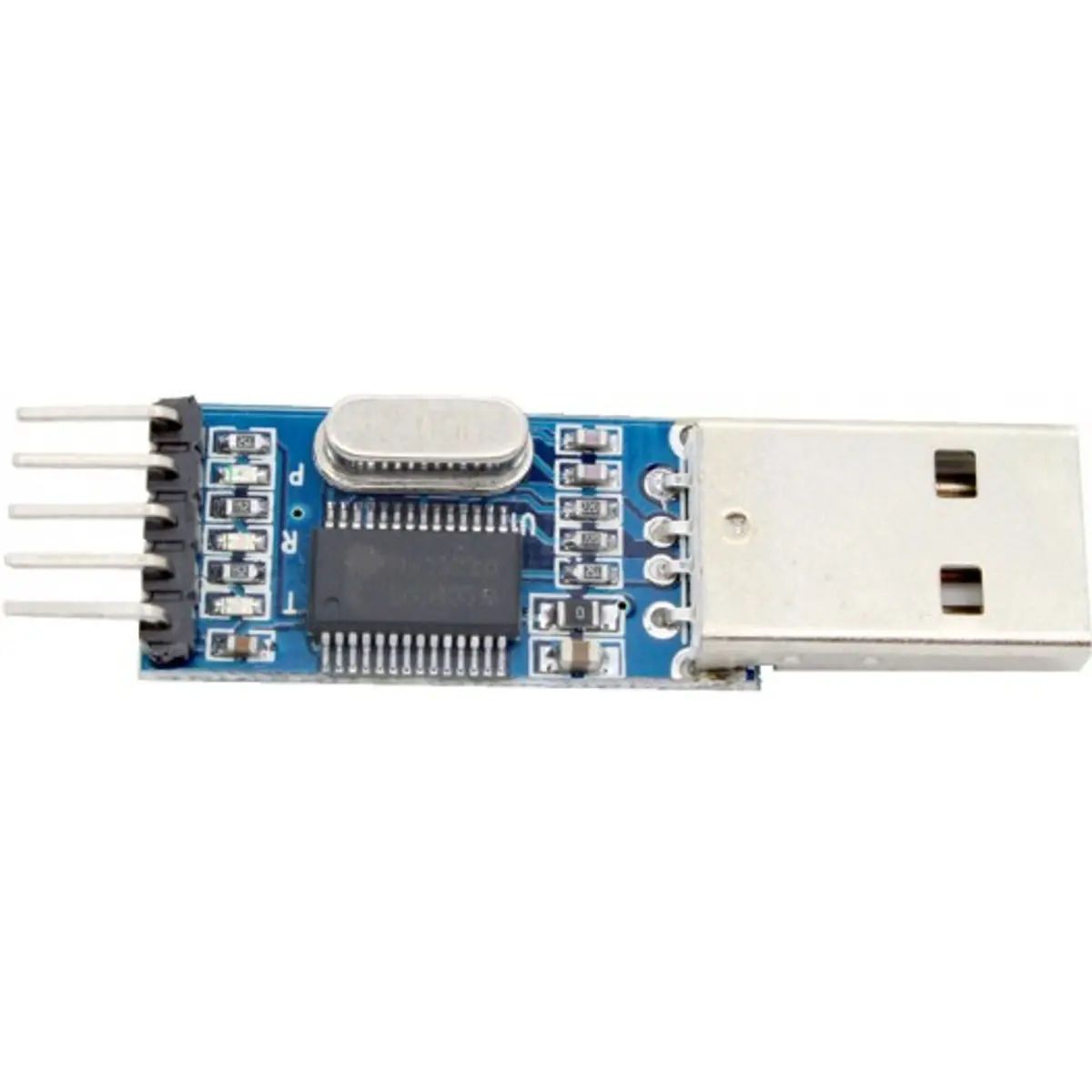 O Conversor USB-Serial TTL PL2303 é um adaptador que utiliza o chip da Prolific PL2303HX para converter sinais USB em sinais TTL RS232 o que o torna extremamente útil quando se quer comunicar o computador com microcontroladores em geral. O Conversor USB-Serial TTL PL2303 é uma placa de dimensões reduzidas que possui em uma de suas extremidades um conector USB para ser ligado diretamente ao computador e em outra extremidade uma barra de pinos para fácil ligação com a placa cuja comunicação será estabelecida, possui tensões de 3.3 e 5V o que lhe permite trabalhar com uma quantidade maior de microcontroladores independente de sua alimentação.