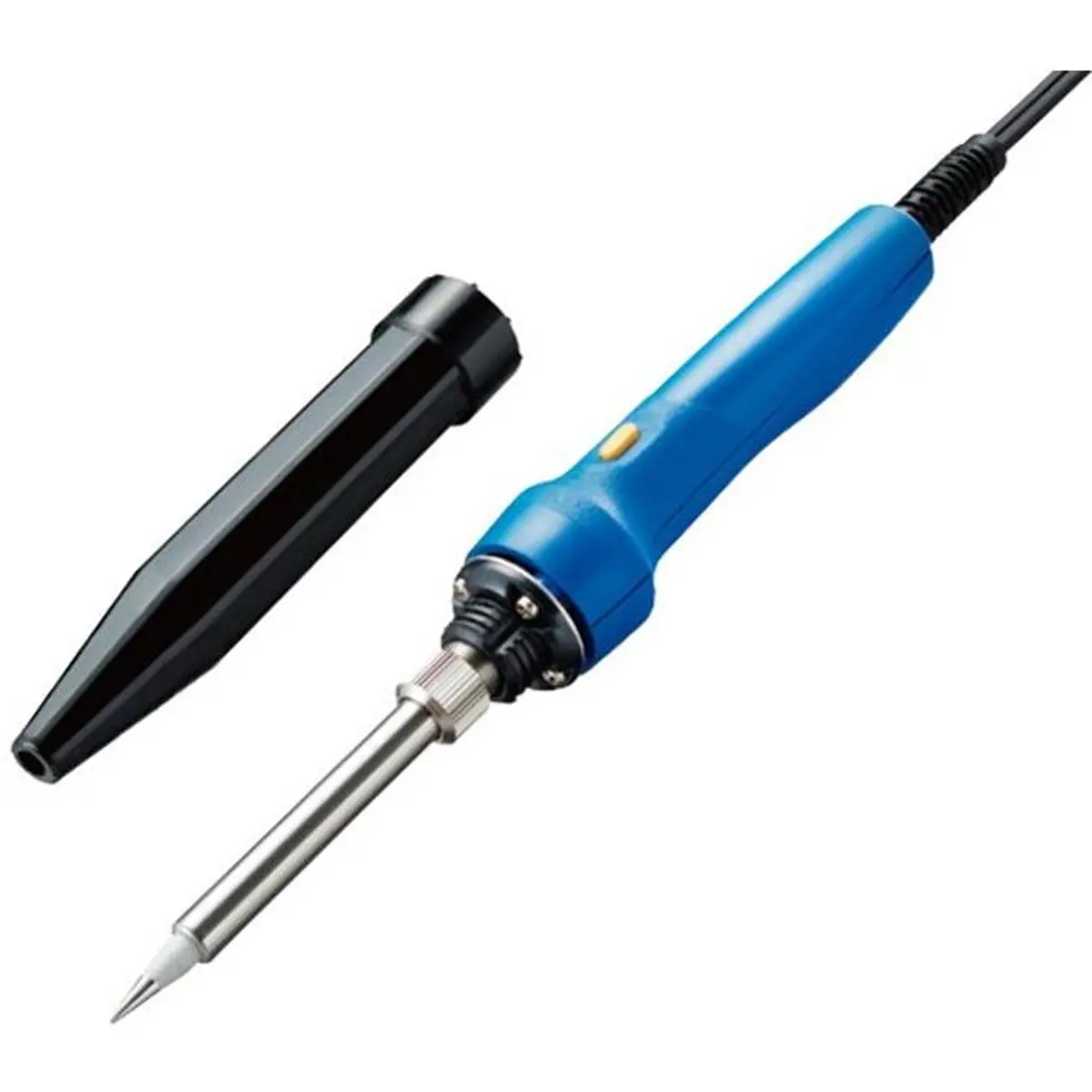 Ferro de soldar compatível com 230 V, com potência ajustável entre 20 W e 200 W, ideal para trabalhos de soldadura de precisão. Possui comprimento de 210 mm e peso de apenas 65 g, facilitando manuseio e mobilidade. Inclui cápsula de proteção que permite guardar o ferro até 3 minutos após desligar, aumentando a segurança. Compacto e eficiente, é adequado para pequenos reparos domésticos e de eletrónica.