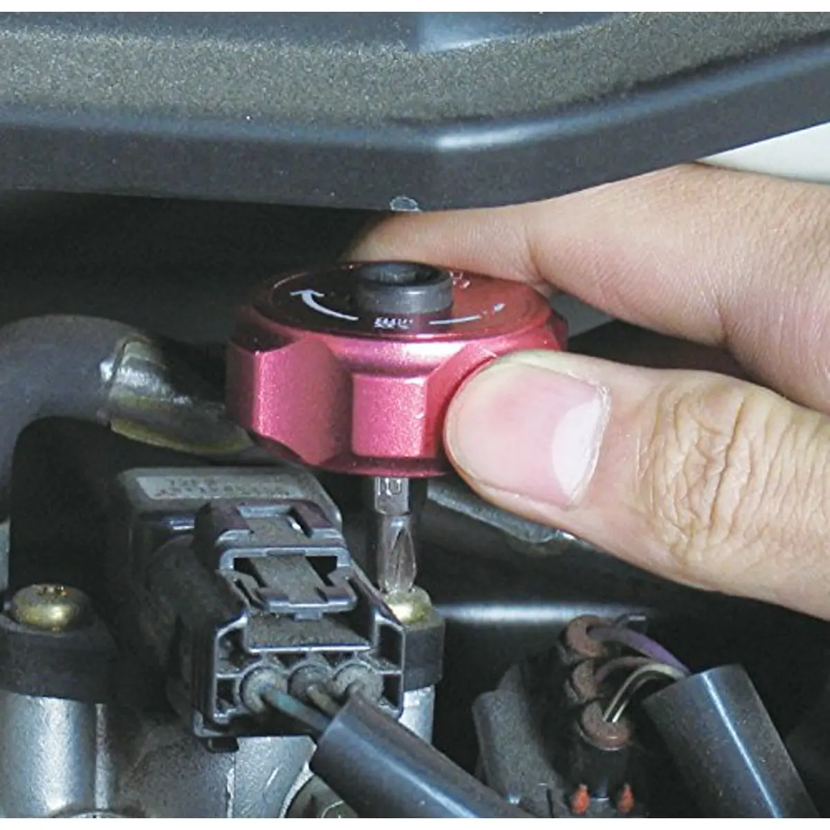 Chave manual compacta com baixo perfil e mecanismo de roquete, ideal para acesso a áreas confinadas. Corpo em alumínio anodizado, soquete magnetizado para segurar o bit Phillips #2, compatível com bits hexagonais padrão de 6,35 mm (1/4 polegada). Em conformidade com ROHS, oferece precisão, leveza e manipulação fácil em espaços reduzidos.