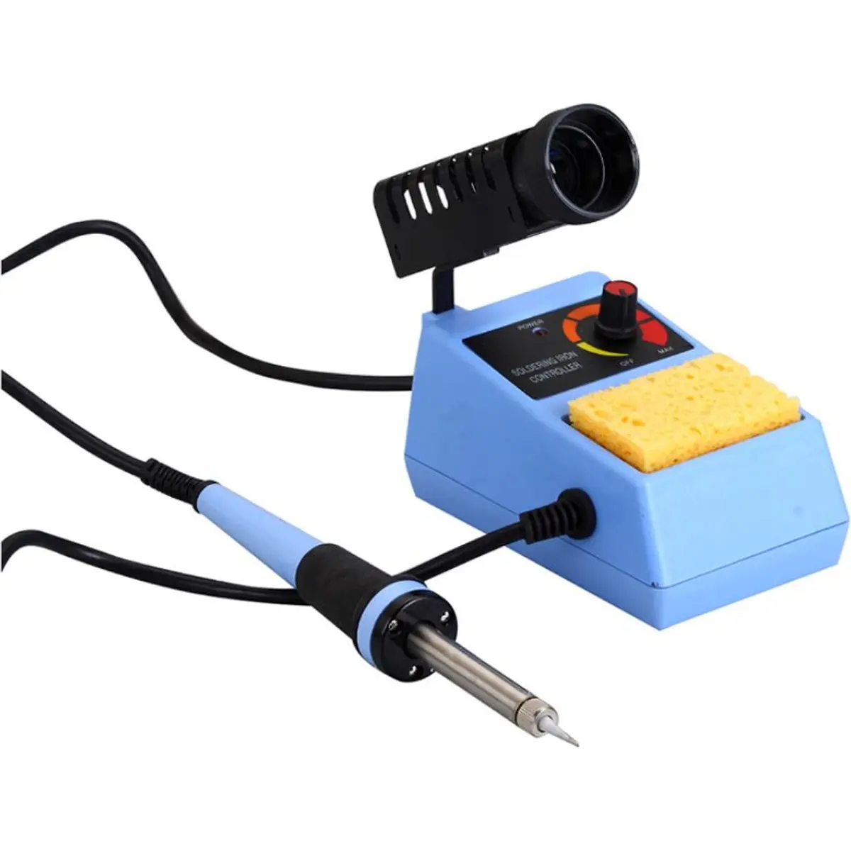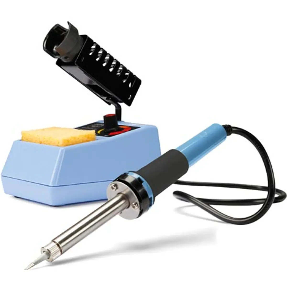 Estação de soldadura analógica com regulação manual e controlo eletrónico da temperatura, acompanhada por indicador LED de ligado/desligado. Possui potência de aquecimento de 48 W e faixa de temperatura de 175 a 480 °C, operando a 230 VAC. O conjunto é compacto (195 x 100 x 90 mm) e pesa 620 g, com potência de entrada até 50 VA. Ideal para trabalhos de soldagem em eletrónica, artesanato e reparações com controlo preciso de calor.