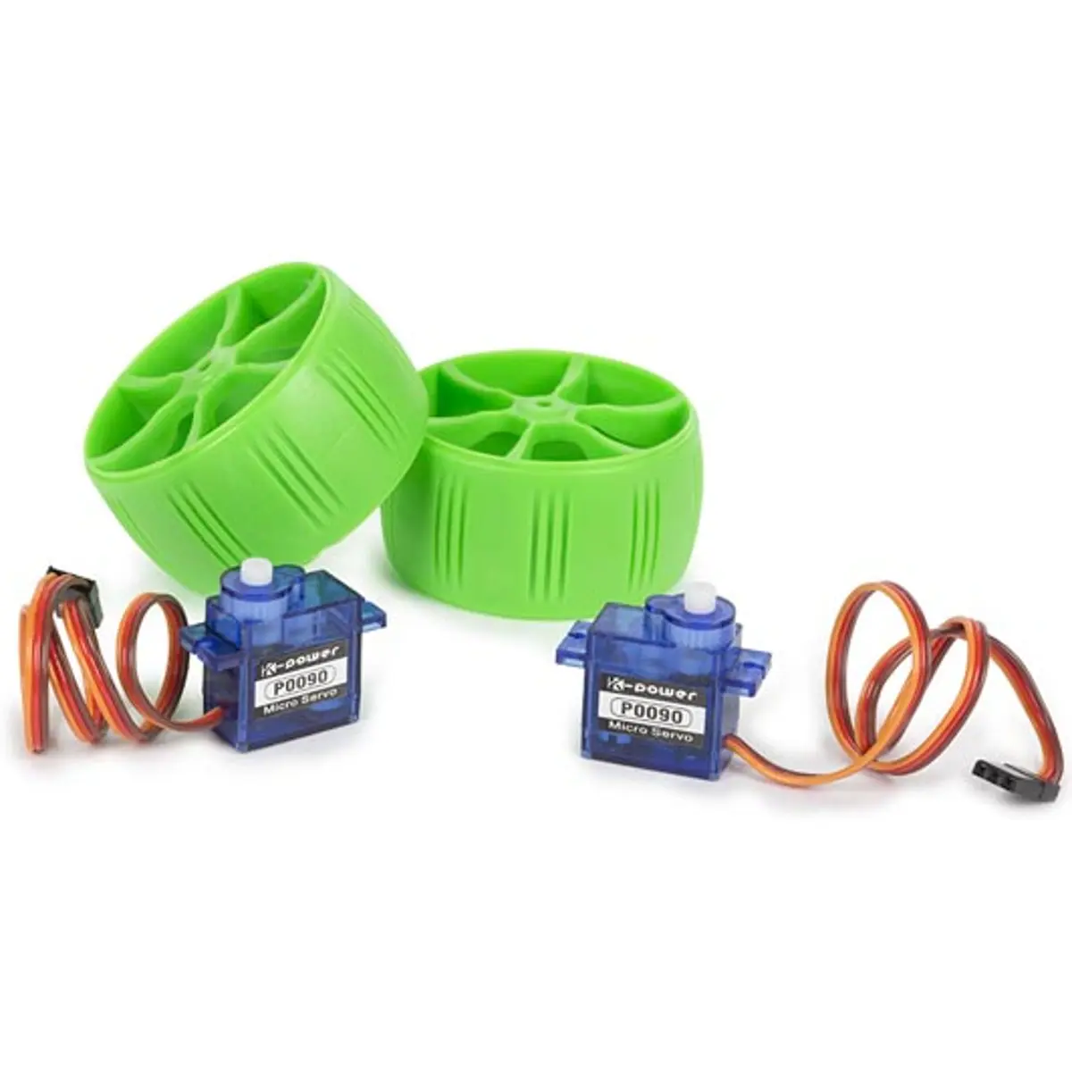Este conjunto inclui duas rodas modulares e dois servo-motores de 360° 9G.