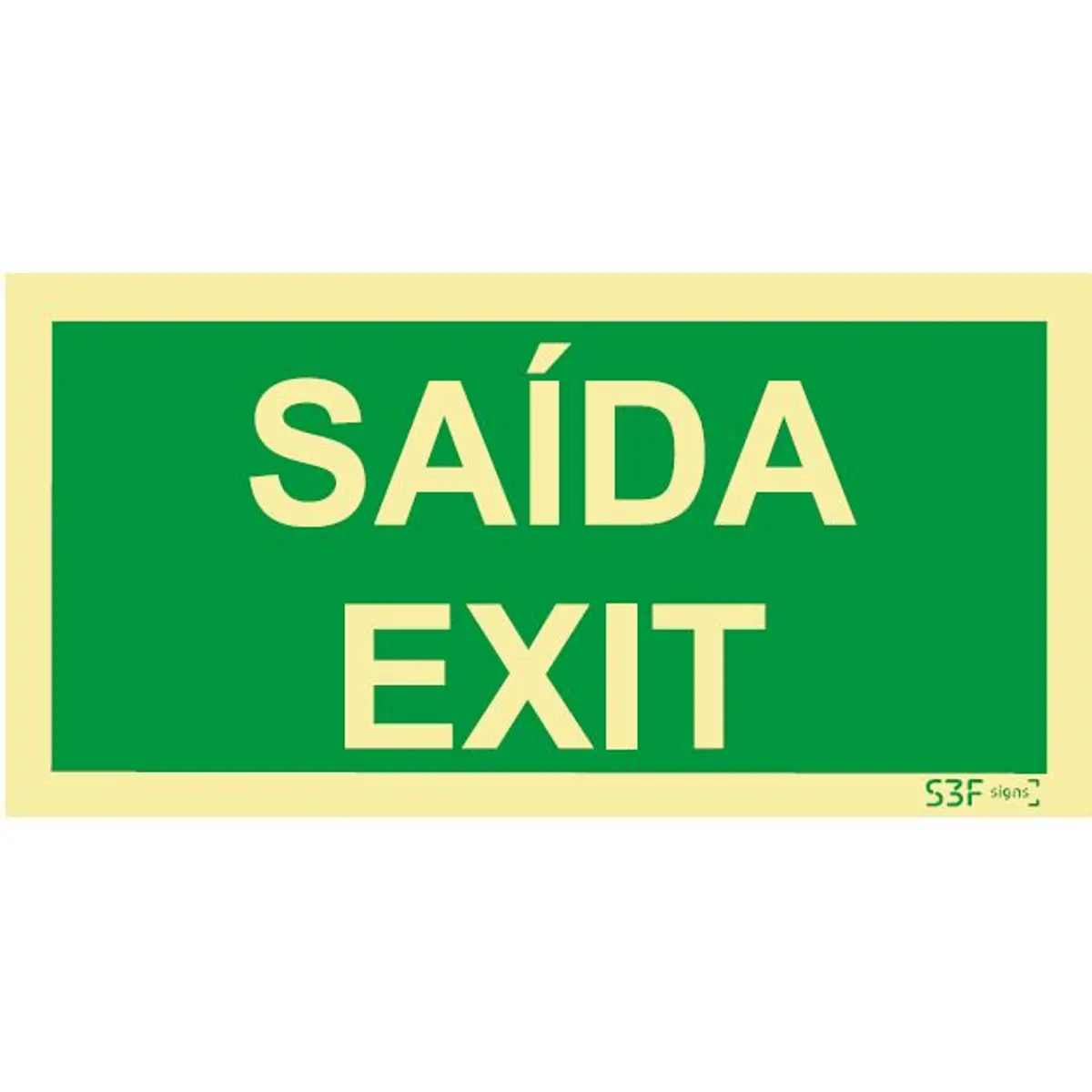 Placa de sinalização fotoluminescente p/ saída de emergência (2 Línguas) - 200x100mm
