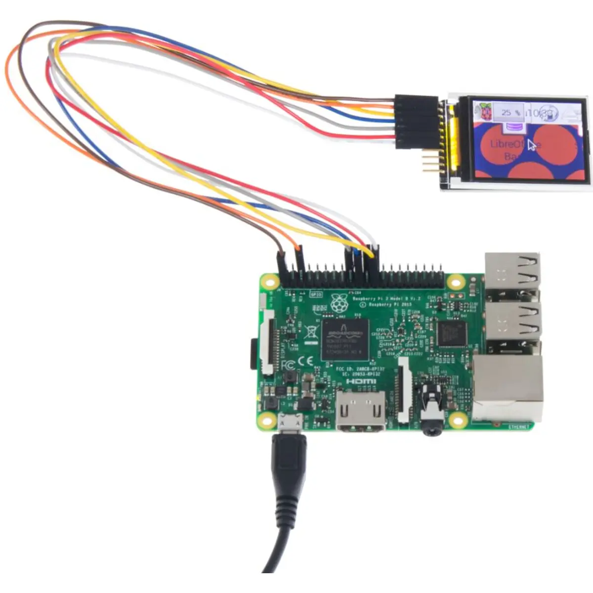 O display pode ser operado com 3,3V (Raspberry PI), bem como com 5V (Arduino).