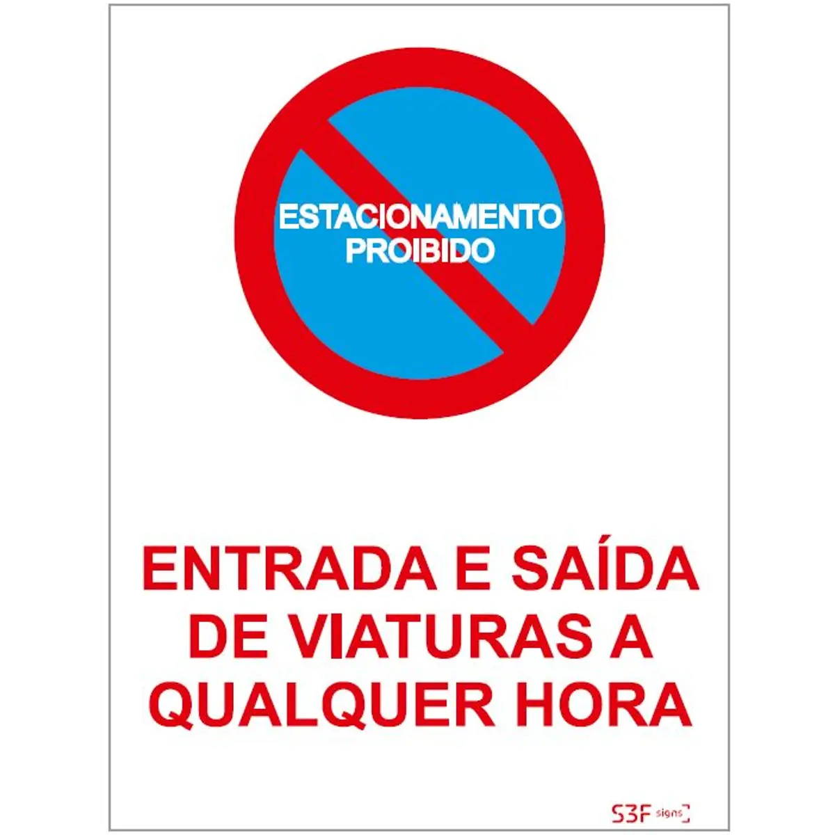 Placa de sinalização PVC ''Estacionamento proibido entrada e saída de viaturas'' - 300x400mm