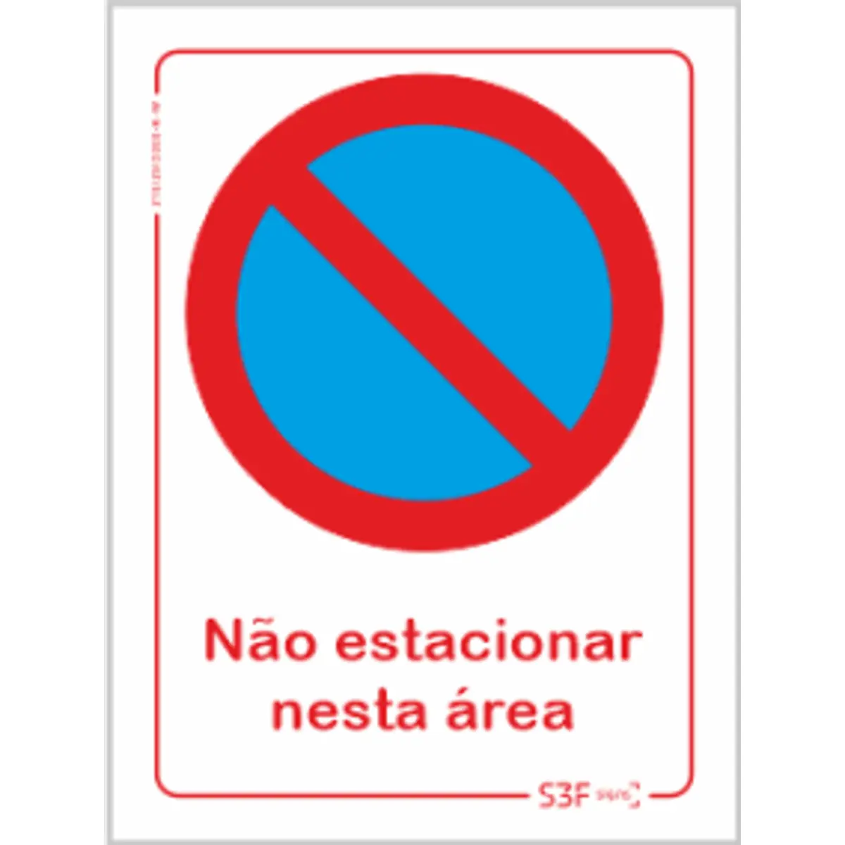 Placa de sinalização PVC ''Não estacionar nesta área'' - 300x400mm