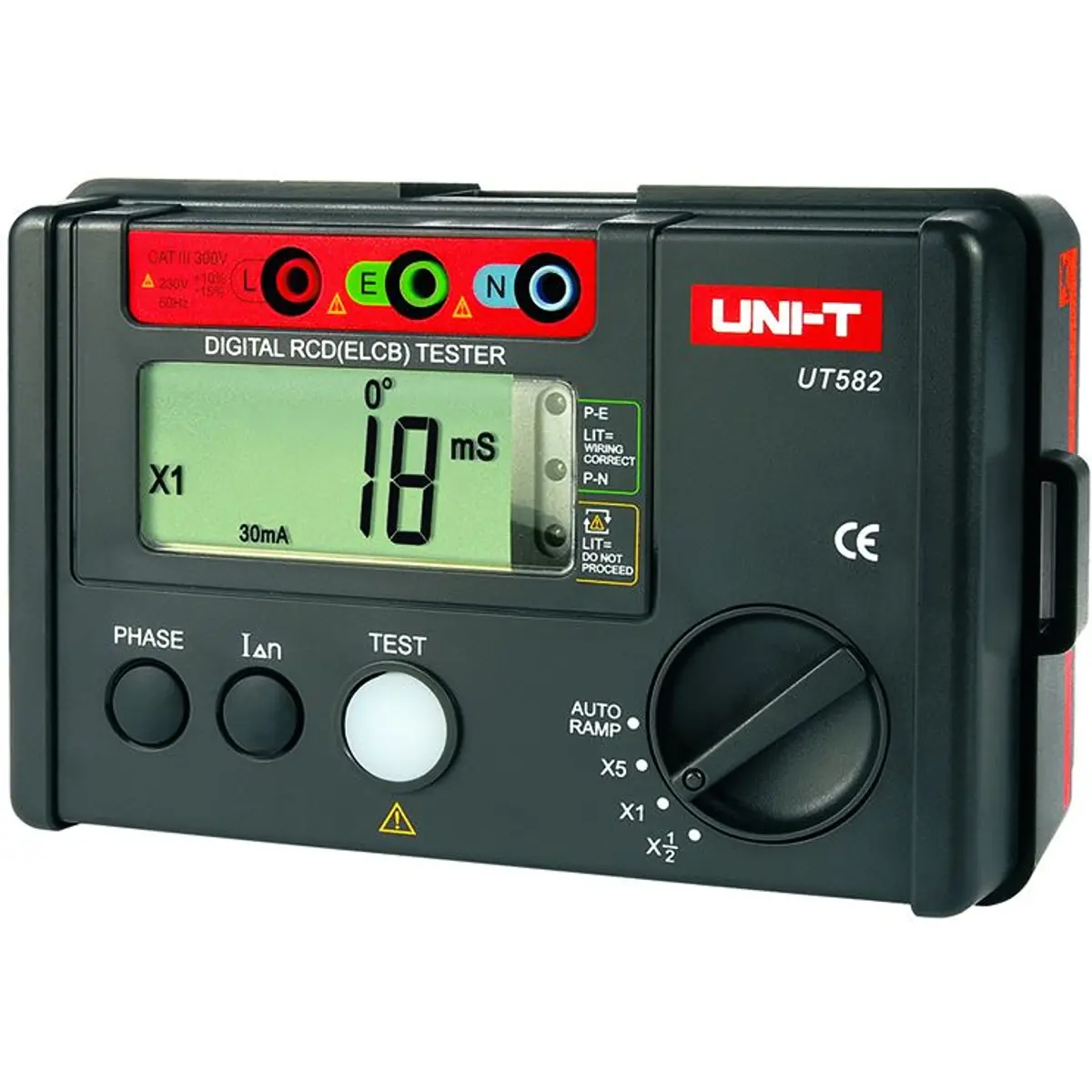 UNI-T é um testador digital RCD (ELCB) com comutador de fase, verificação de conexões, RAMPA AUTOMÁTICA, buzzer de desconexão, visor de faixa excessiva e muito mais. Encontra o padrão IEC61557.