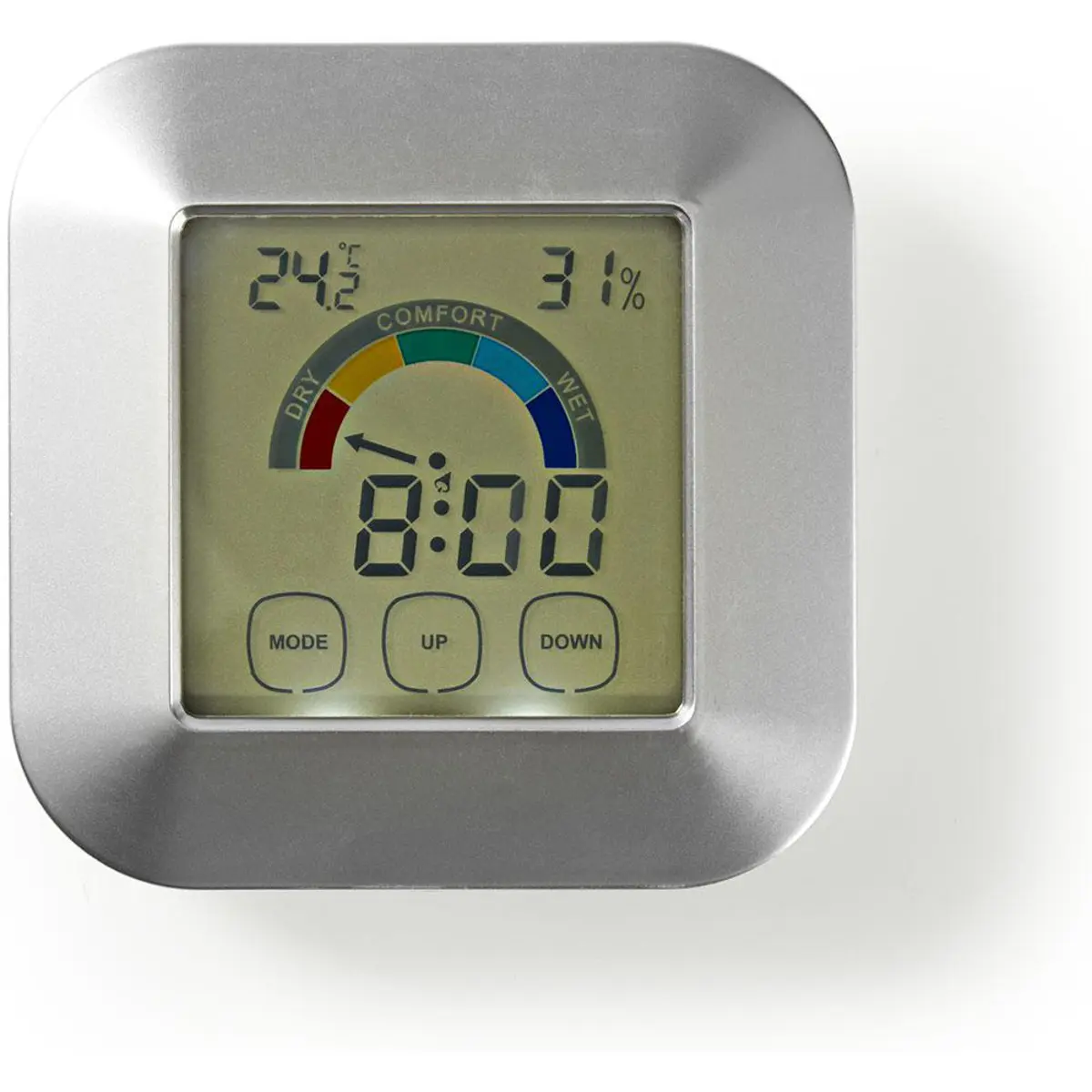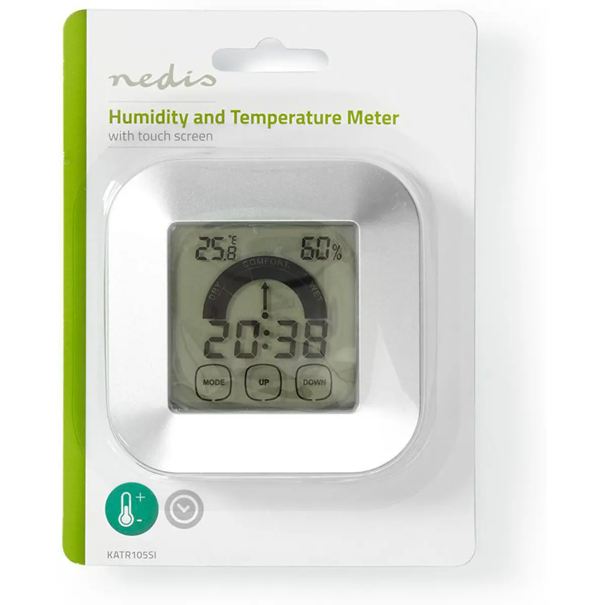 Nedis KATR105SI - Higrómetro/Termómetro/relógio digital touch c/ função alarme