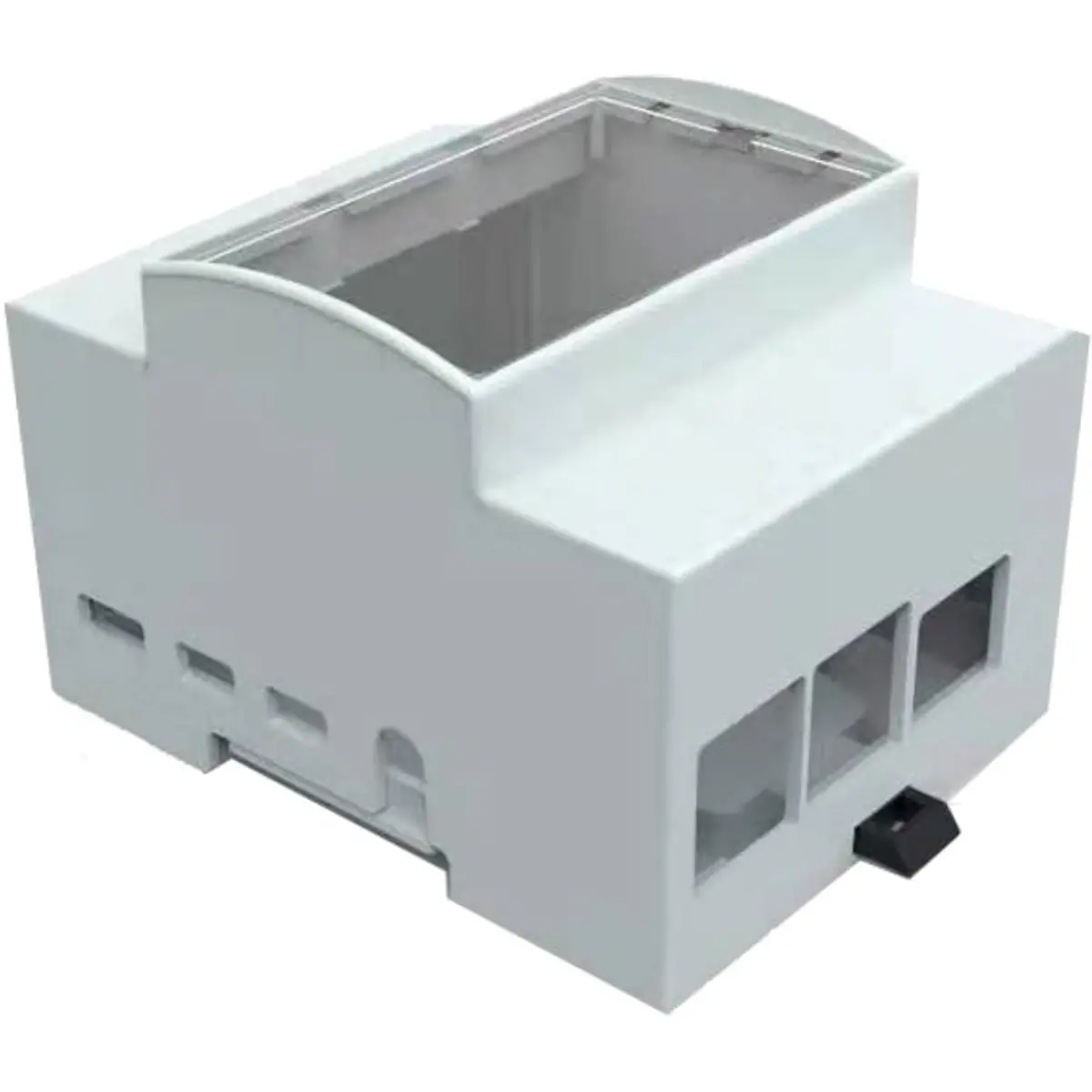 A caixa é uma solução de montagem em calha DIN para placas compactas, fabricada em éter polifenileno (PPE) com classificação UL94-V0 e auto-extinguível. Disponibiliza cor branca, recesso para todas as conexões, painel transparente removível para acesso rápido e espaço para acessórios. Permite montagem estável em calha DIN, oferecendo proteção mecânica, organização de cabos e acesso facilitado a conectores, ideal para aplicações industriais ou de bancada.