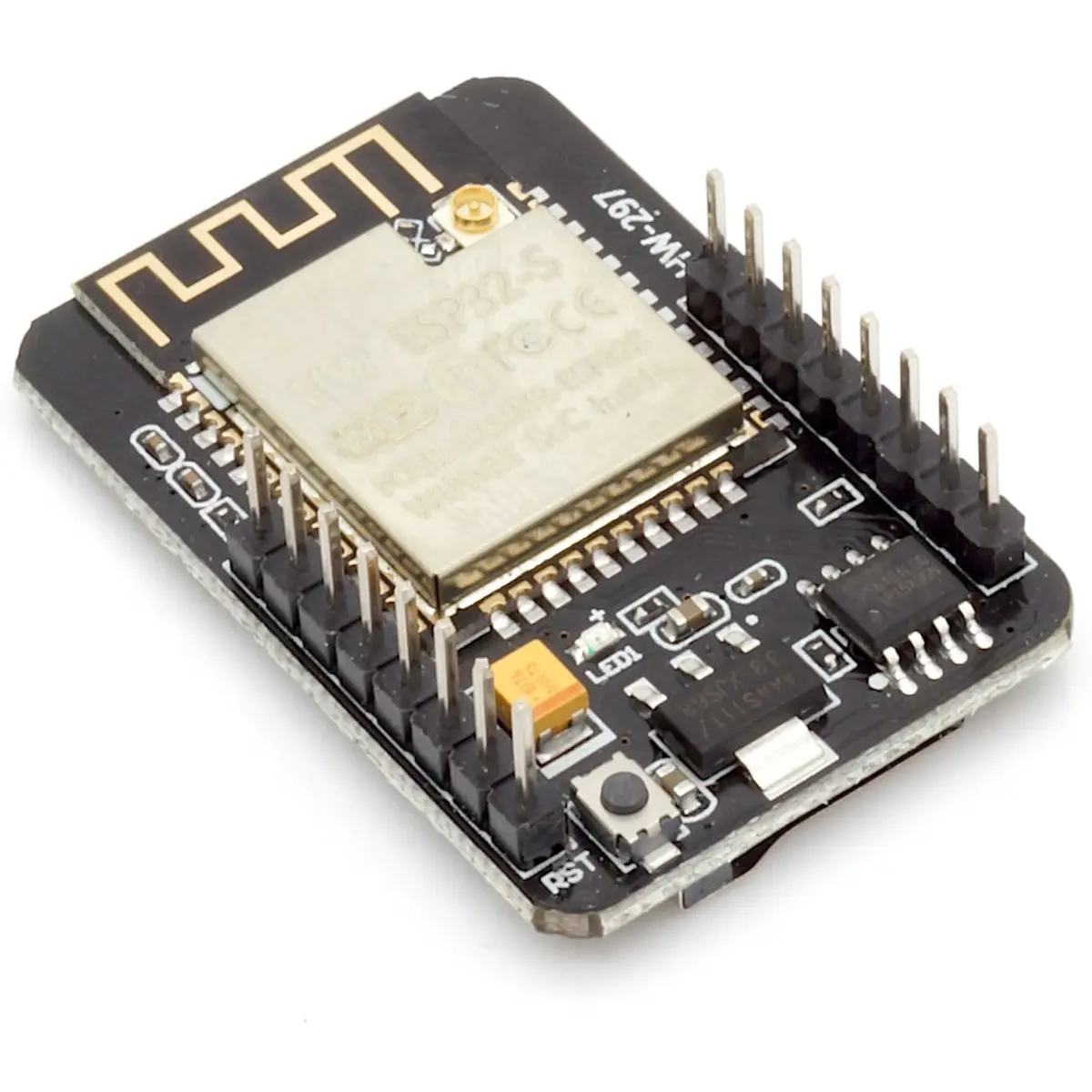 Este módulo de desenvolvimento com conectividade Wi-Fi e Bluetooth integra um SoC de 32 bits de baixo consumo e suporta câmaras OV2640 e OV7670. Oferece interfaces UART, SPI, I2C, PWM, ADC e DAC, slot MicroSD e antenas integradas com conector U.FL para antenas externas. Com SRAM de 520 KB e PSRAM externa de 4 MB, é adequado para aplicações IoT com câmaras em prototipagem e produção.