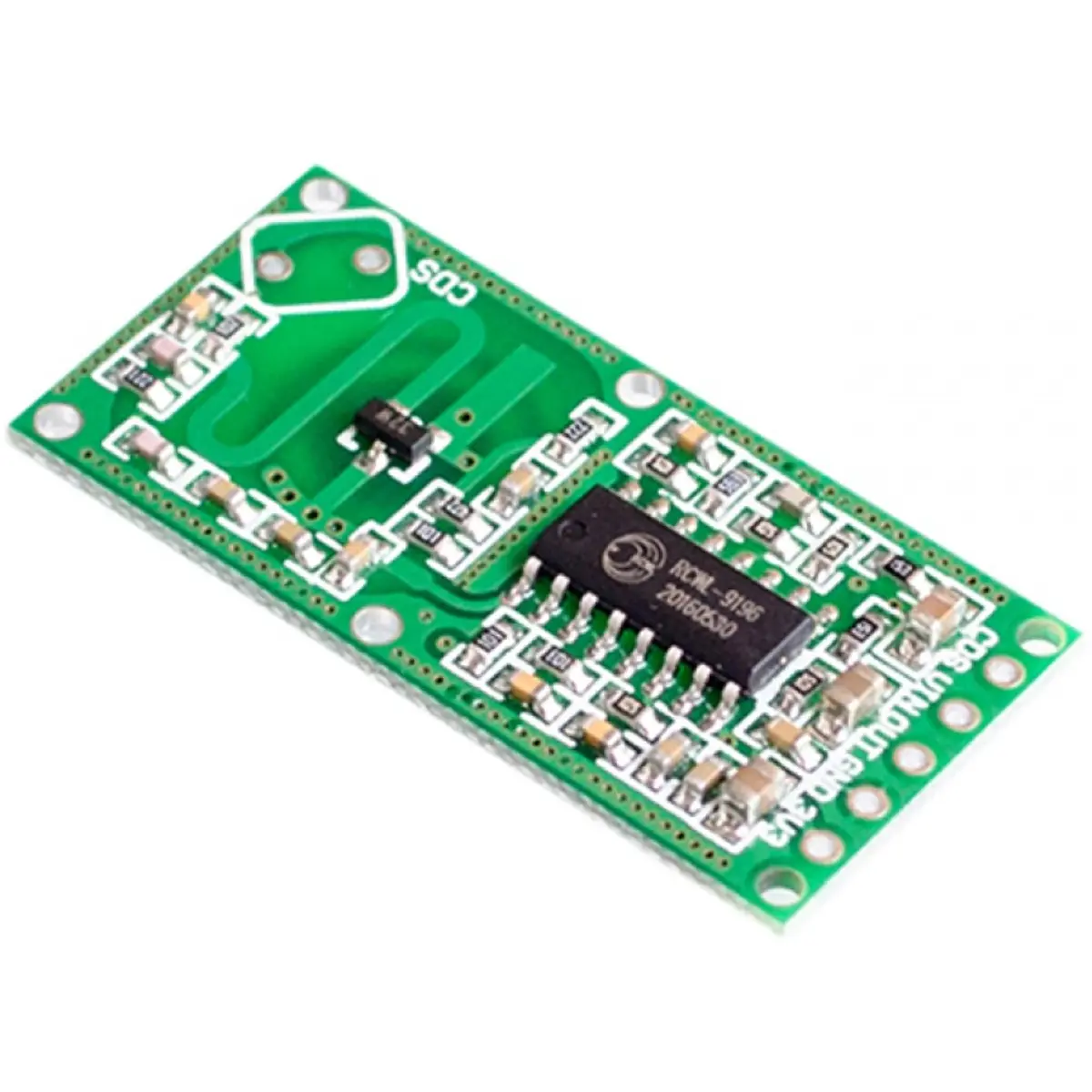 Este módulo utiliza radar de microondas para sensor de presença em ambientes interiores. Opera entre 4 e 28 V de alimentação, com saída opcional de 3,3 V. O tempo de bloqueio e a distância de alcance são ajustáveis, oferecendo elevada sensibilidade e grande alcance. O circuito RCWL-9196 oferece fiabilidade e uma ampla faixa de tensão de alimentação. Amplamente utilizado em iluminação e alarmes por indução de presença humana, este sensor é uma solução flexível e de baixo consumo para automação.