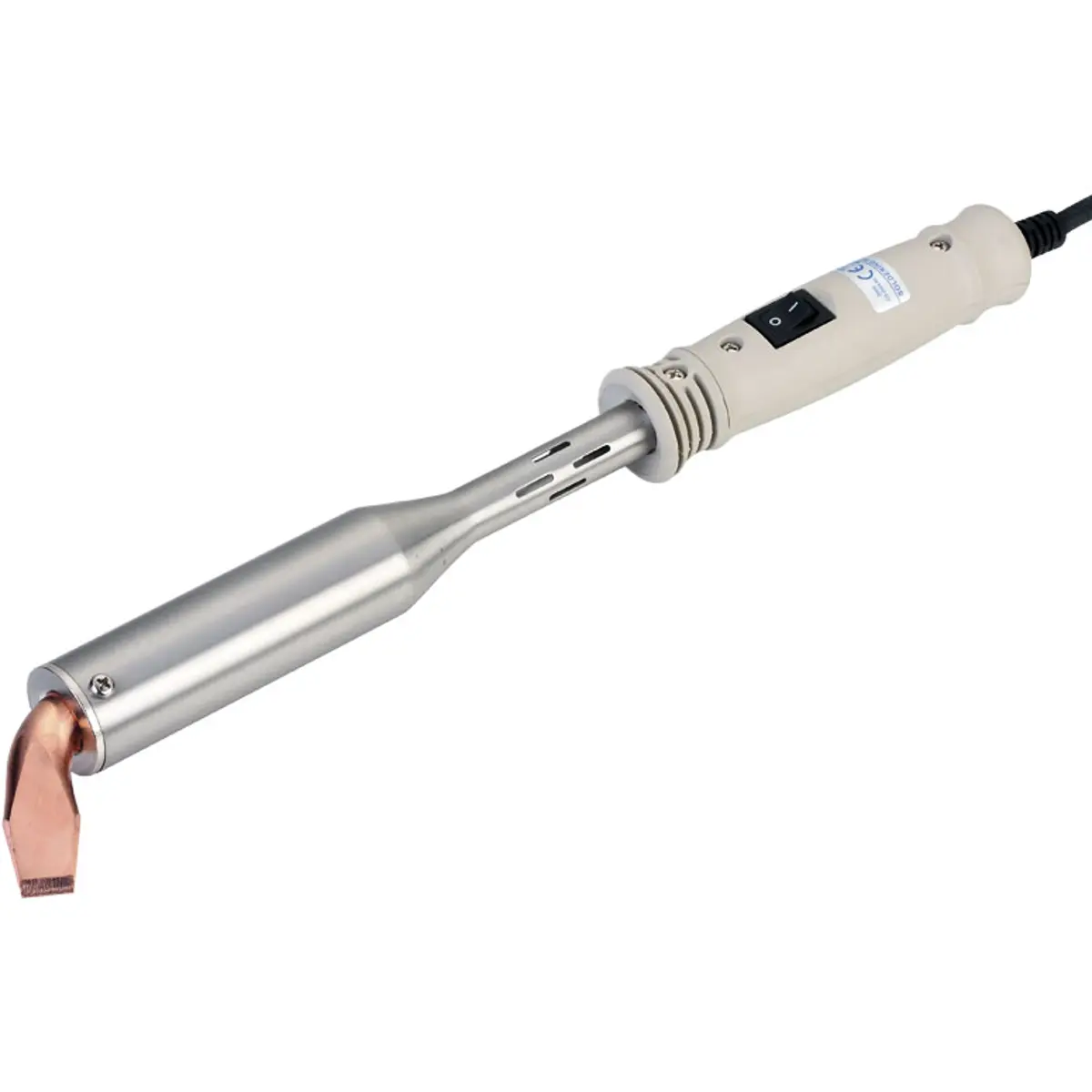 Ferro de soldar profissional com alimentação 220-240V e potência de 300W, equipado com ponta plana em cobre Ø16,8mm e resistência metálica. Com um comprimento de 380mm, oferece manuseio estável para soldaduras precisas em circuitos e montagens. Ideal para trabalhos de reparação e montagem de componentes eletrónicos, proporcionando desempenho fiável, aquecimento rápido e durabilidade na utilização diária.