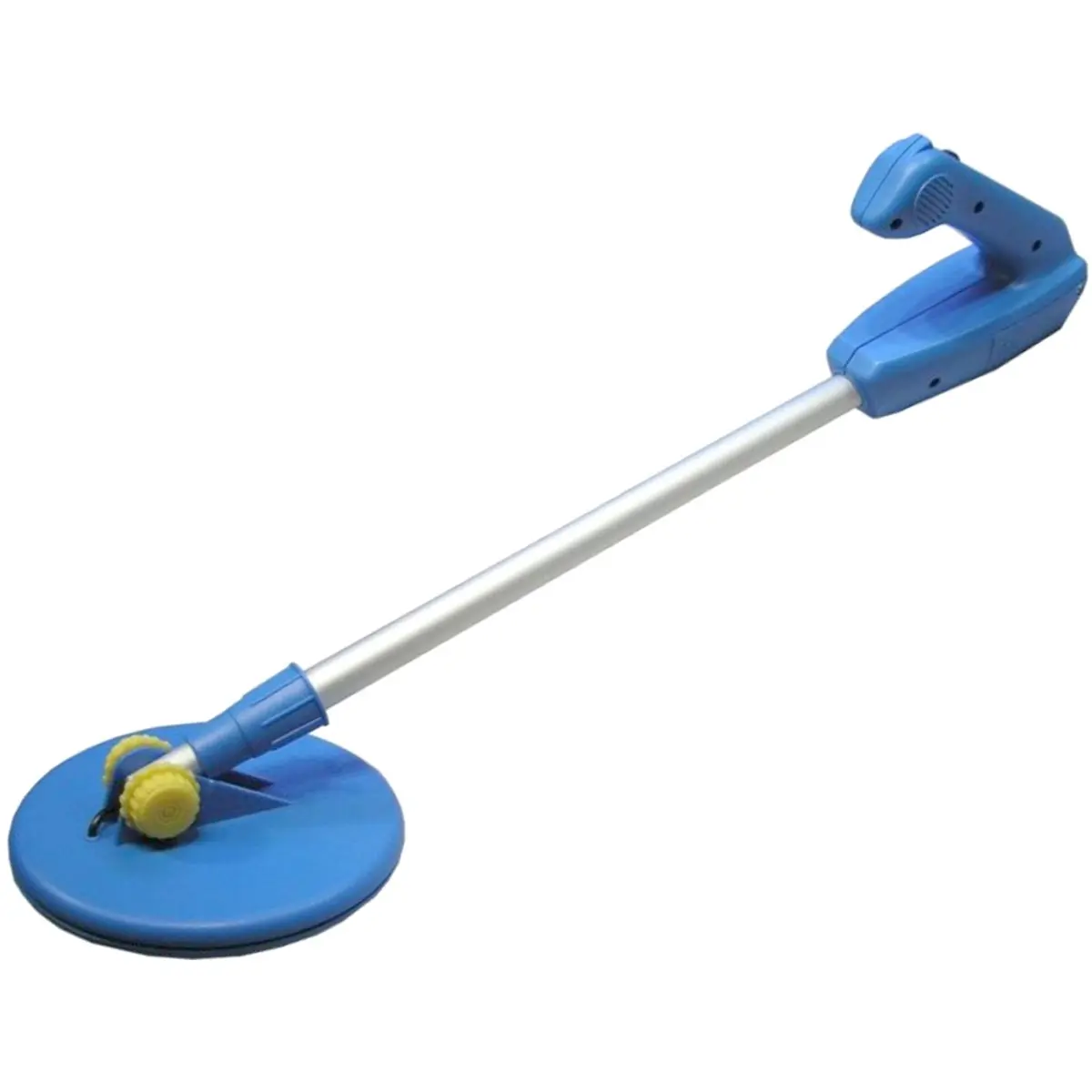 Detector de metais económico, adequado para fins educativos, com haste regulável, cabeça de detecção estanque, e indicador visual (LED) e alarme sonoro. Funciona com uma pilha de 9 V (não incluída) e oferece uma cabeça de detecção de Ø17 cm. Com dimensões de 17,5 x 59 x 6 cm, o aparelho é leve e portátil, ideal para demonstrações em sala de aula, experiências de geologia e atividades educativas sobre detecção de metais, com utilização supervisionada por adulto.