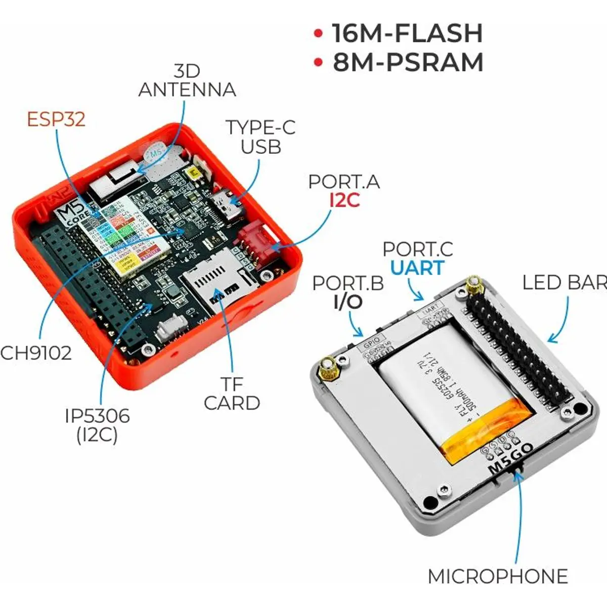 - Adote a base M5GO BOTTOM compatível com blocos de LEGO de 8mm, a estrutura é divertida de construir.