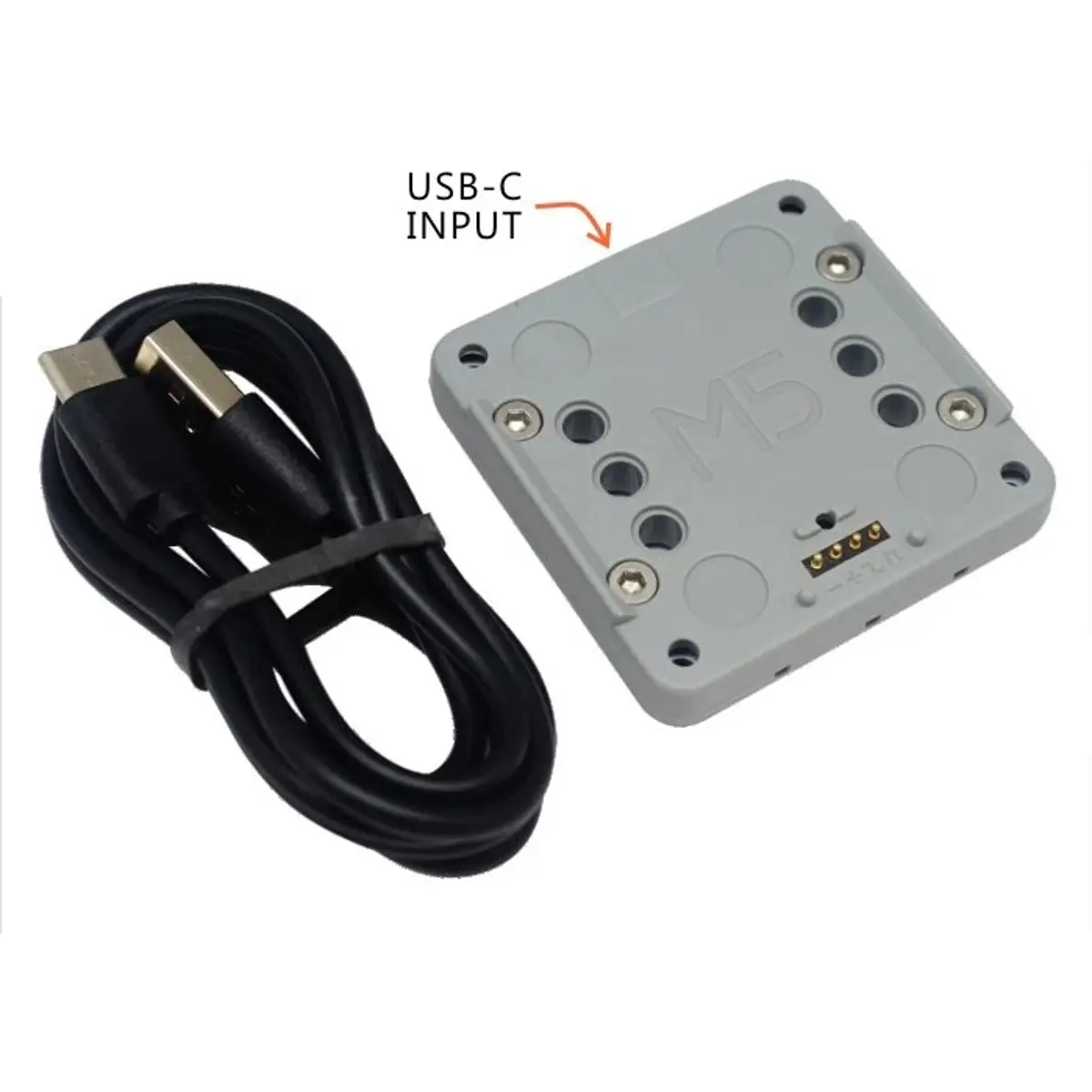 Base de carregamento com cabo USB-C incluído, concebida para carregamento de bases de prototipagem e módulos de expansão. Proporciona alimentação estável para projetos de automação, robótica educativa e aplicações IoT. Facilita a organização de cabos e a montagem de demonstrações, permitindo manter dispositivos prontos para uso sem interrupções de alimentação.