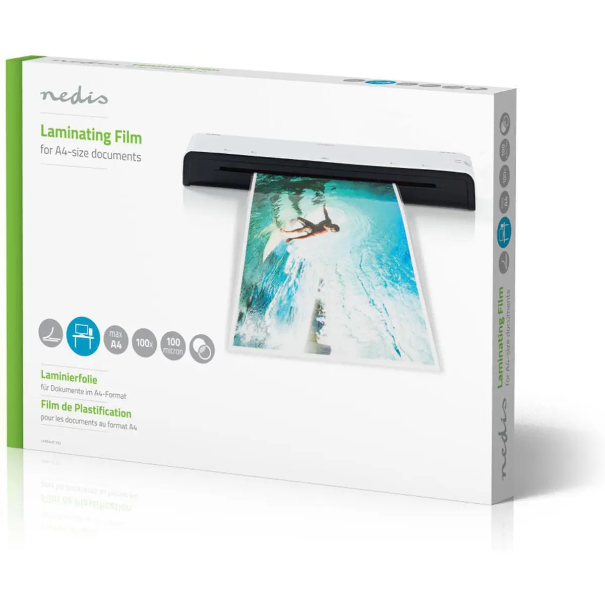 Película para máquina plastificadora tamanho A4 (emb.100) - Nedis LAMIA4AT100