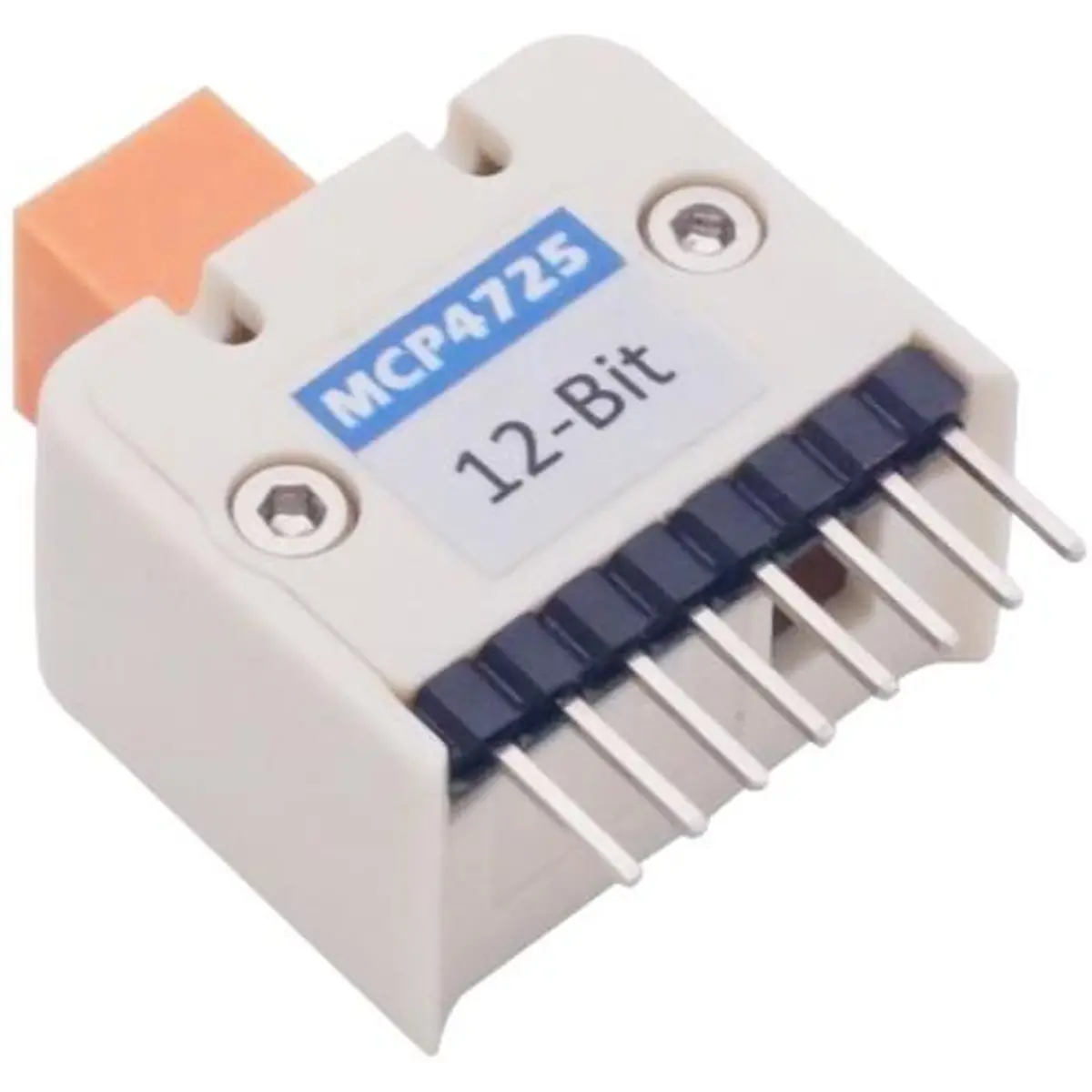 Conversor Digital-Analógico (DAC) com memória não volátil (EEPROM). Seu amplificador de saída de precisão integrado permite obter oscilação de saída analógica rail-to-rail. Os dados de entrada e configuração do DAC podem ser programados na memória não volátil (EEPROM) pelo utilizador usando o comando da interface I2C. Endereço I2C: 0x60