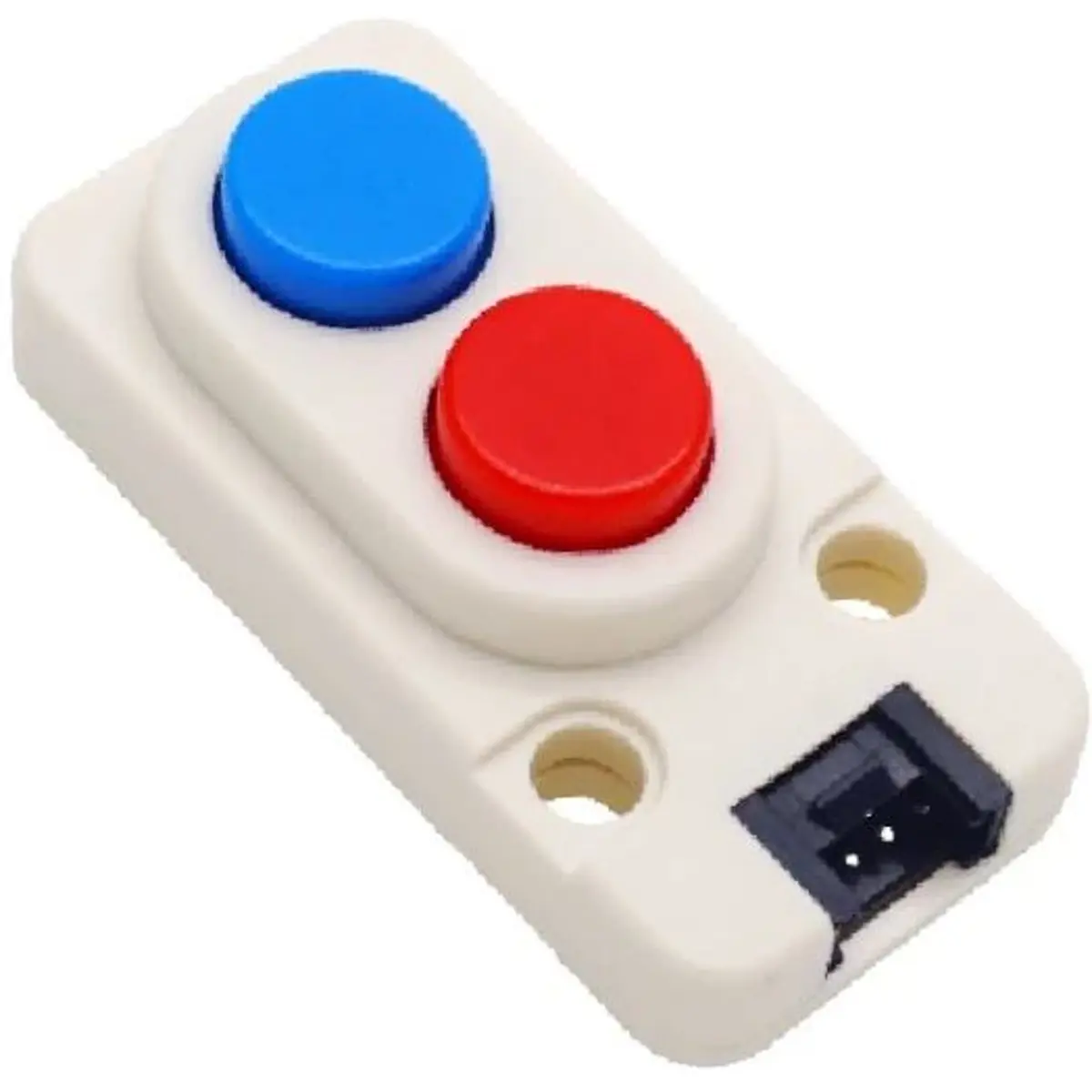 Este módulo oferece dois botões de cores distintas que utilizam o mesmo mecanismo e detetam o estado via nível do pino de entrada (alto/baixo). A comunicação dá-se pela porta GROVE B, facilitando a integração em protótipos, automação e interfaces físicas sem dependência de componentes adicionais. Ideal para interruptores programáveis, controlo de ações por toque e aplicações embutidas.