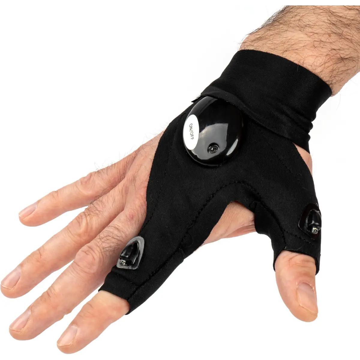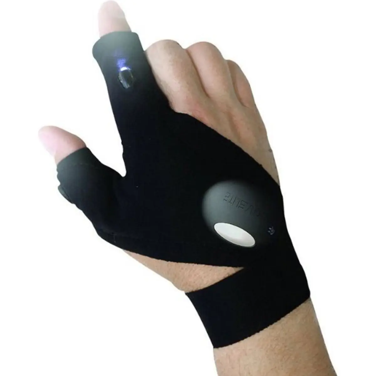 Luvas ideais para pesca, campismo, caminhadas, jogging à noite, ou qualquer tipo de trabalho que seja necessário fazer no escuro. Além disso, também pode usar a luva se precisar de luz, mantendo as mãos livres. Coloque a luva e ative os dois LEDs com o botão ON. O tamanho da luva é universal, graças ao material elástico neoprene que serve em quase todas as mãos.