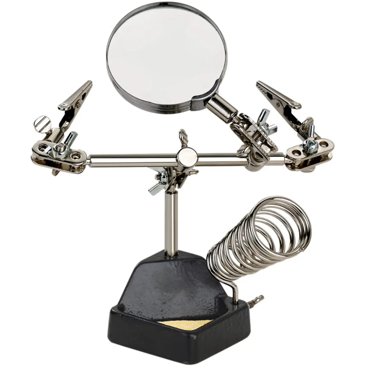 - Suporte de ferro de soldar com crocodilos e lupa.
