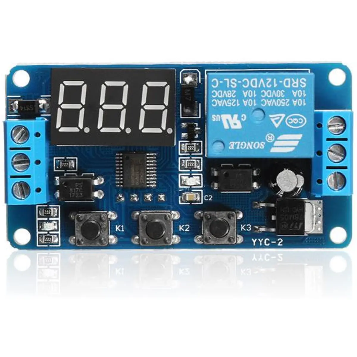 Módulo de relé 12VDC com temporizador digital ajustável (250V 10A) Módulo de relé 12VDC com temporizador digital ajustável (250V 10A) Módulo de relé 12VDC com temporizador digital ajustável (250V 10A)
