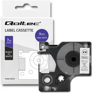 Fita de etiquetar tamanho D1, 9 mm de largura por 7 m de comprimento, com impressão preta sobre fundo branco. Compatível com dispositivos LabelManager e LabelWriter, ideal para organização de armazém, caixas, pastas e prateleiras. Proporciona etiquetas duráveis para uso diário, com substituição simples e resultados nítidos.