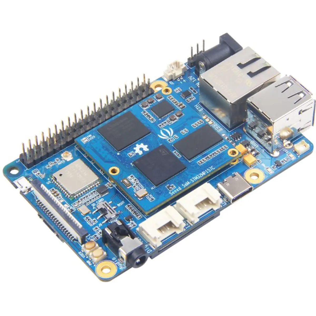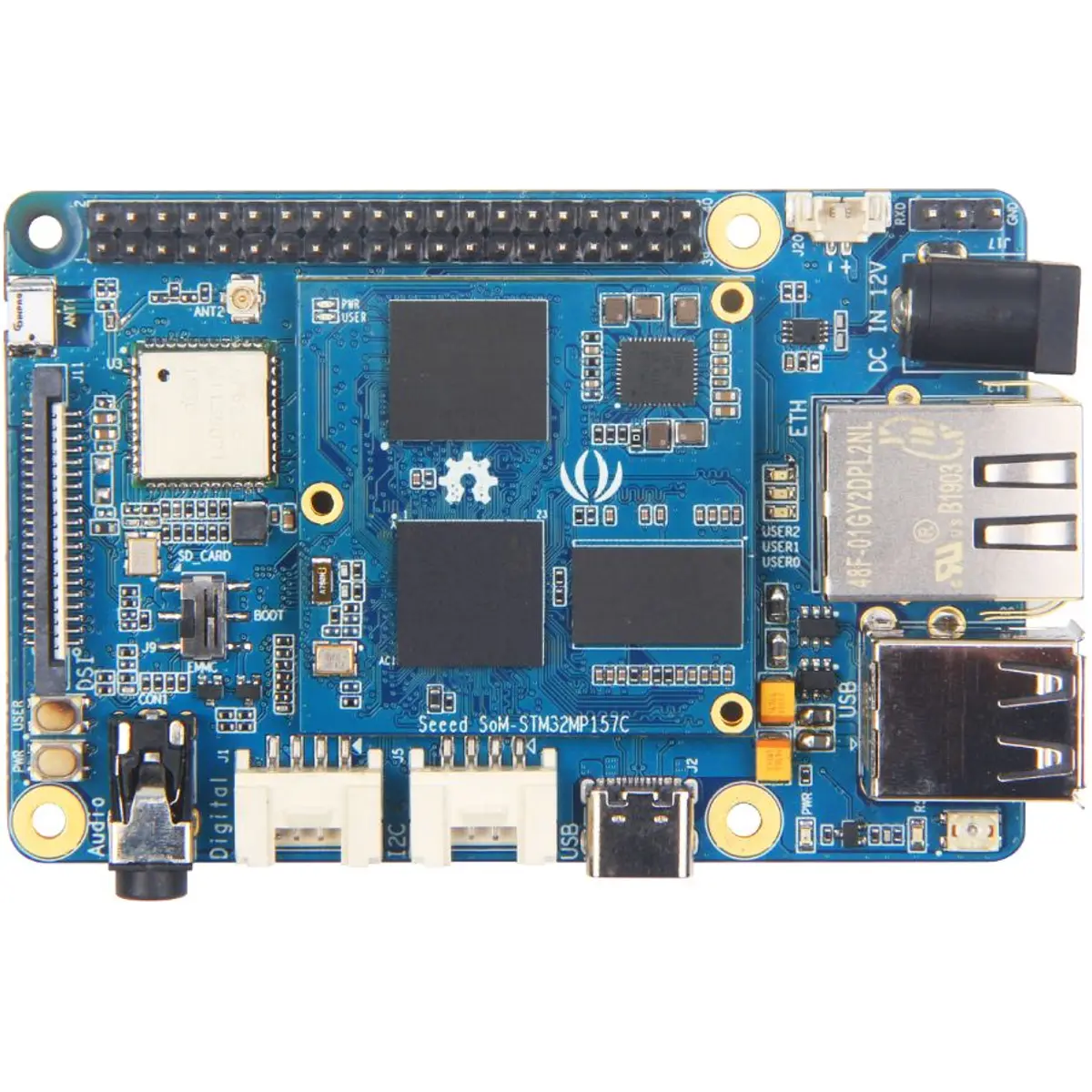 O ODYSSEY - STM32MP157C é um computador de placa única (SBC) baseado no STM32MP157C, um processador de núcleo duplo Arm-Cortex-A7 que funciona a uma velocidade de 650Mhz. O processador também integra um Arm Cortex-M4, o que o torna ideal para tarefas em tempo real.